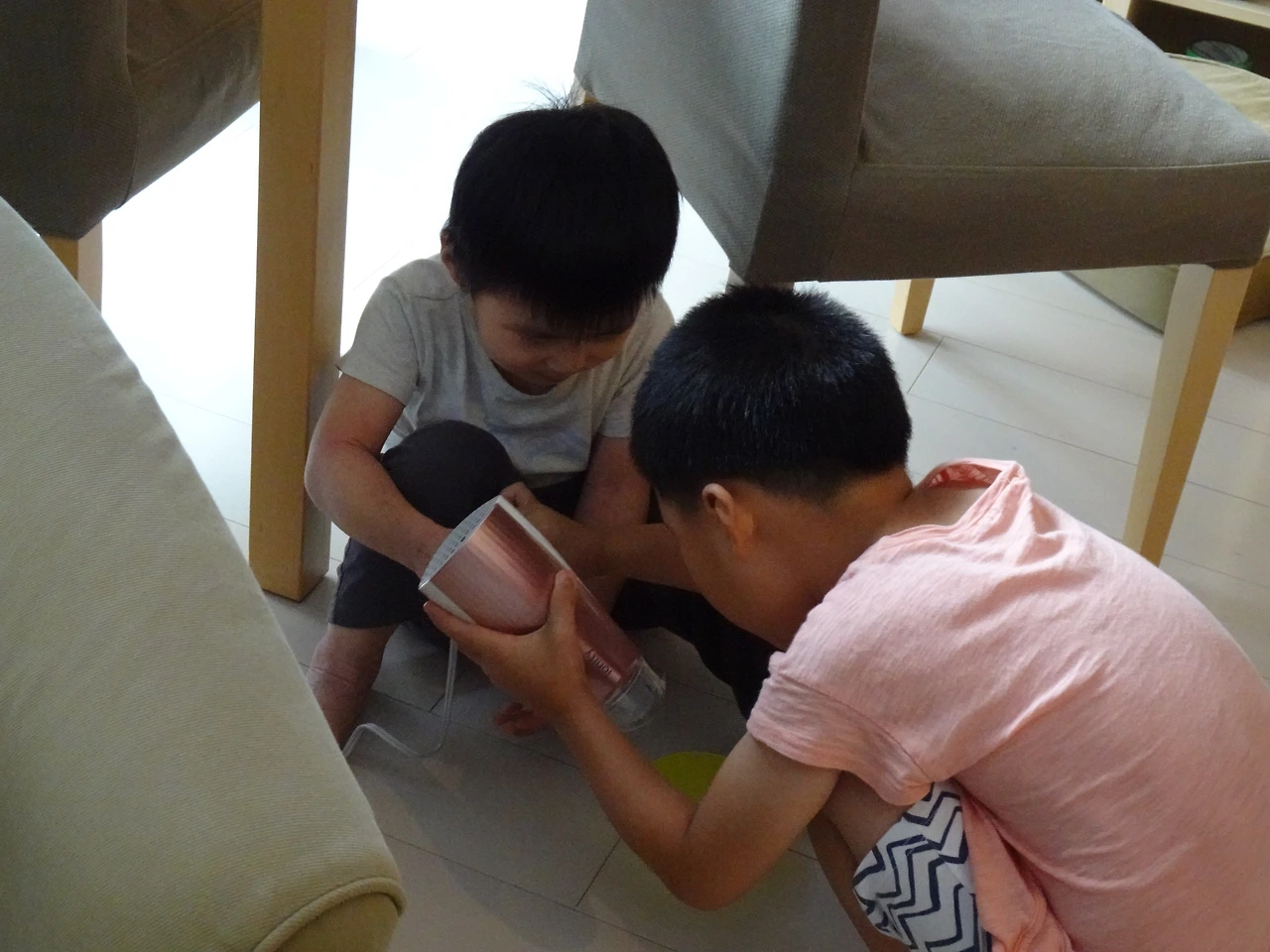3. Eテレ(E테레-NHK교육방송, 우리나라 EBS와 비슷하다)에서 방영되는 만들기 프로그램에서 본 것 만들어보기 - 종이컵 2개와 끈을 활용해 종이컵 전화기를 만들어 목소리 들어보기 등