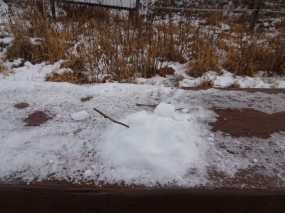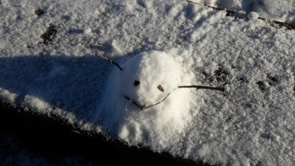 어떤 이의 눈사람 작품, 1단으로 만든 독창적인 작품에 우리는 '웃는 얼굴'을 더해주었다. 다음날은 눈사람도 떠나고 없었다.