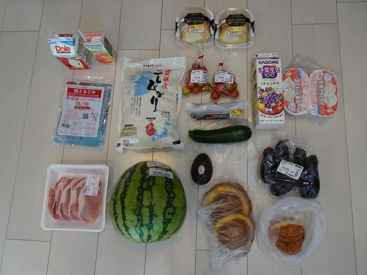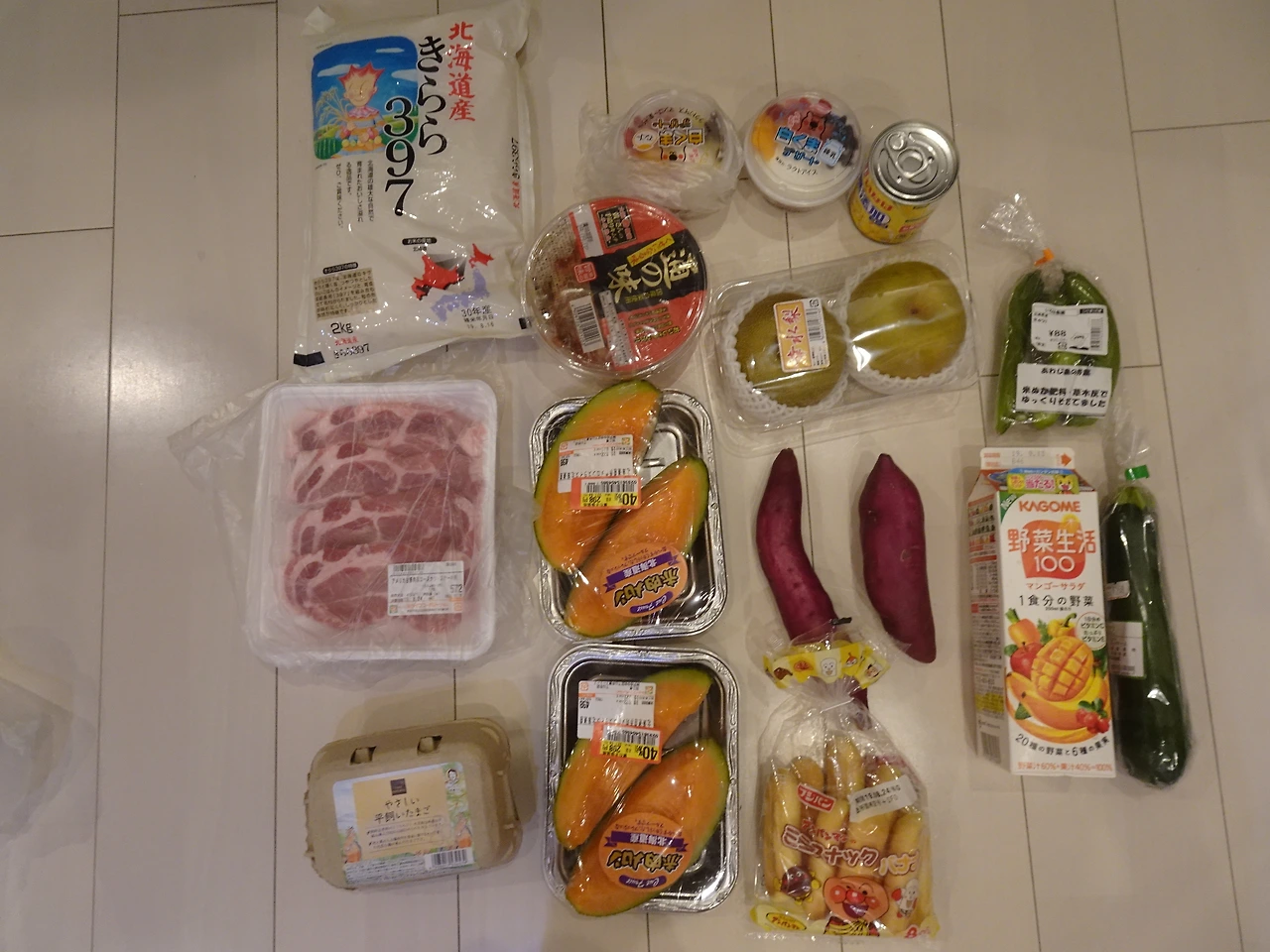 과일 1가지, 야채 1가지, 고기 1가지(or 생선) 유제품, 간식, 물 이렇게만 사도 3-4천엔(32000원-42000원)은 금방이었다. (1주일에 한 번은 쌀을 사야 했다 +쌀값, 평범하게 고시히카리가 널린 곳)