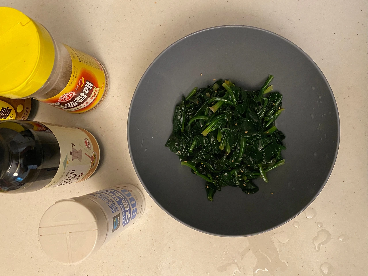 물이 끓으면 시금치를 넣고 휘휘 저어준다.