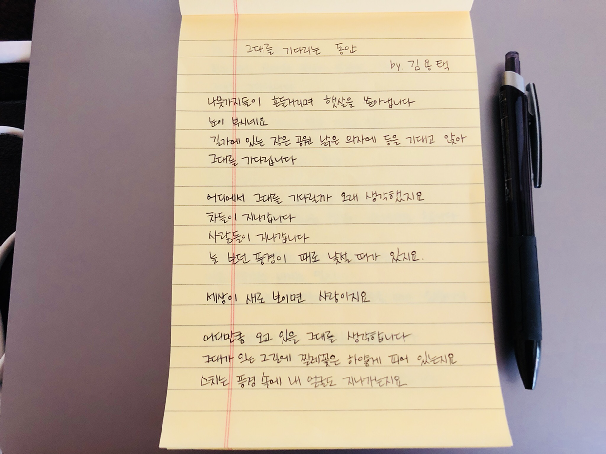 시필사_9일) 그대를 기다리는 동안 - 김용택