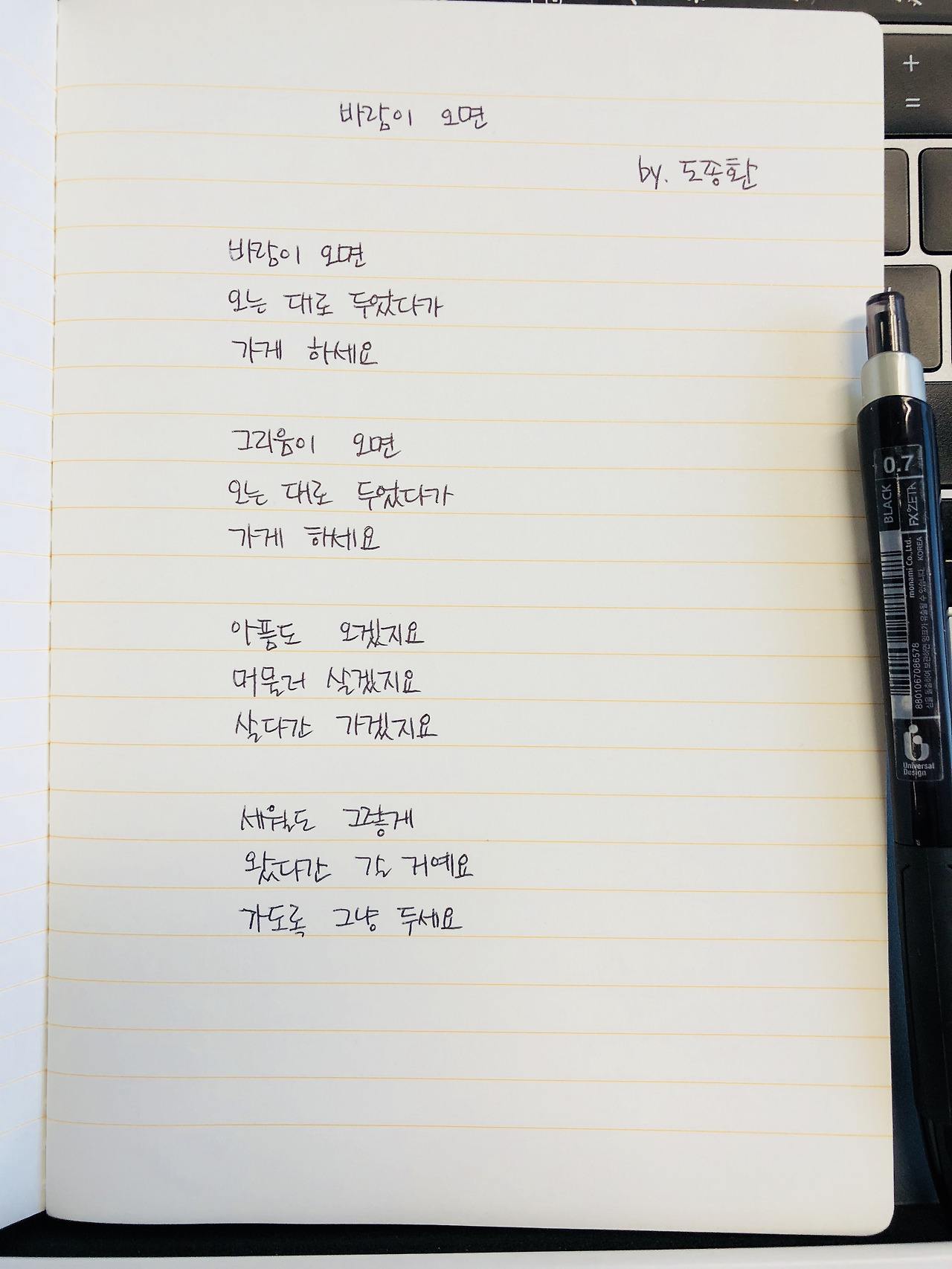 시필사_20일) 바람이 오면 - 도종환