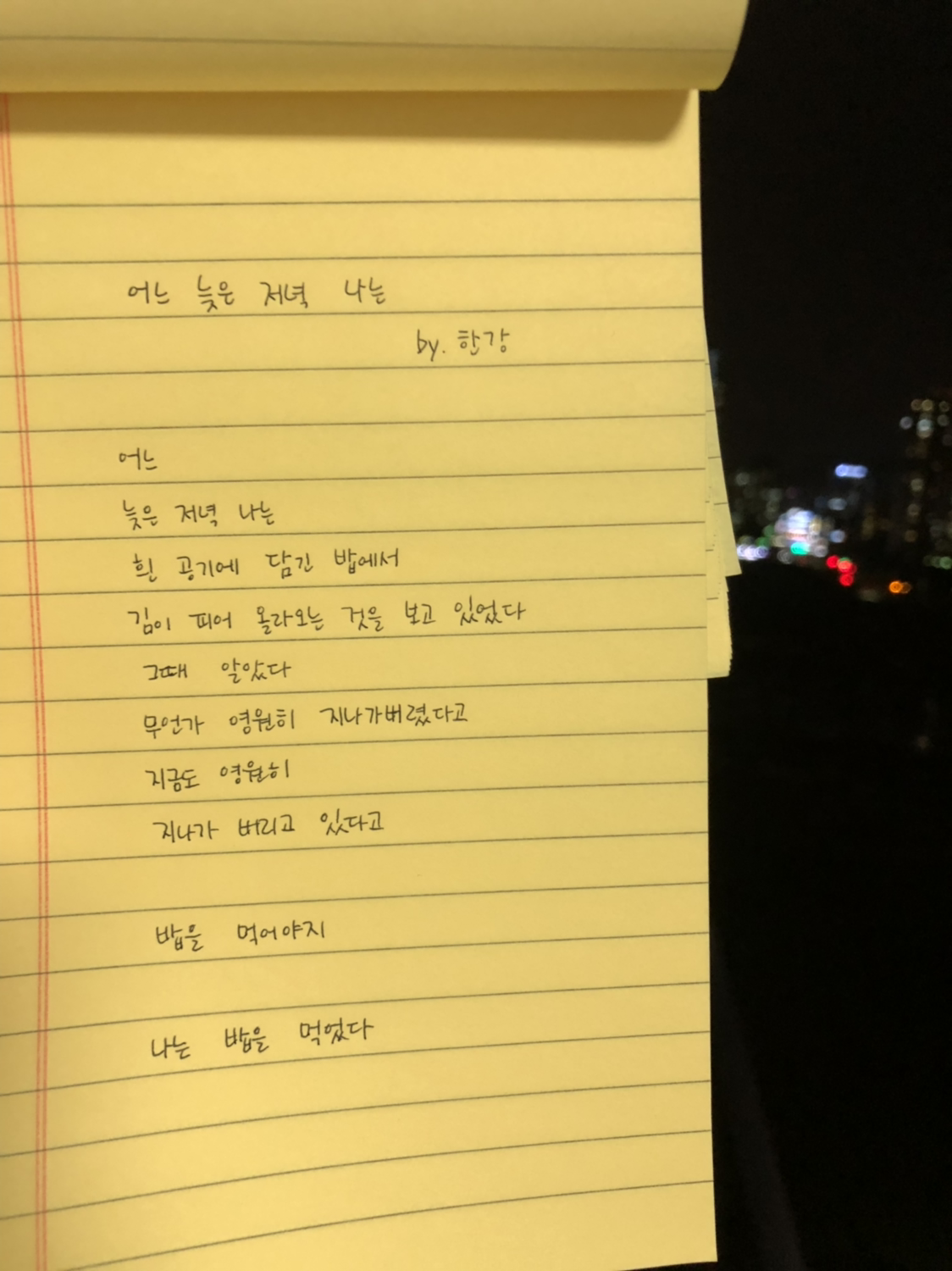시필사_39일) 어느 늦은 저녁 나는 - 한강
