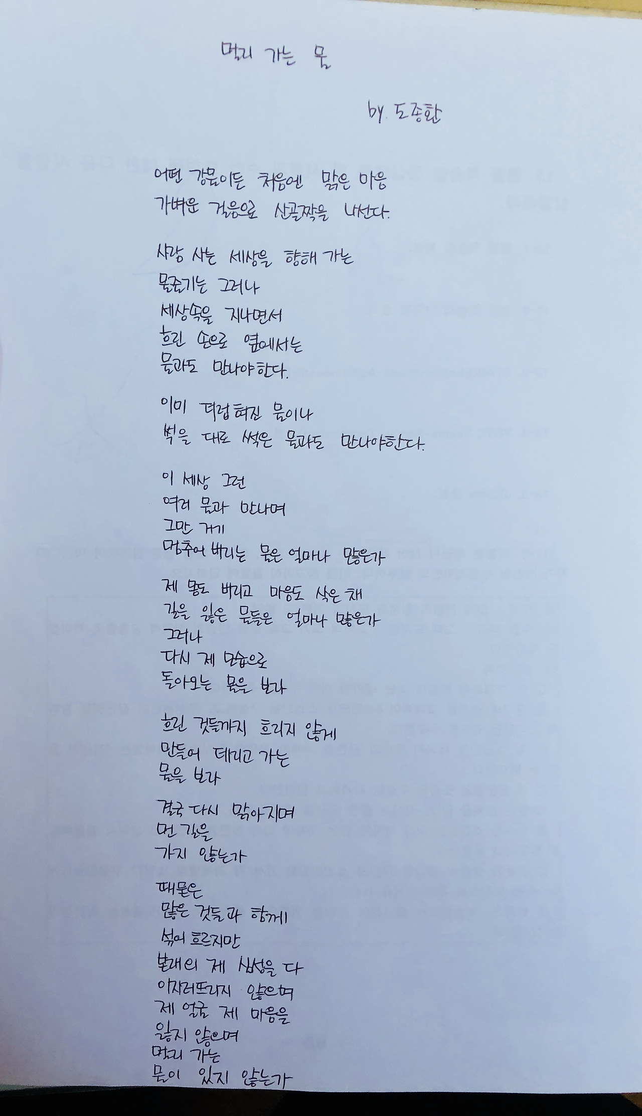 시필사_44일) 멀리 가는 물 - 도종환