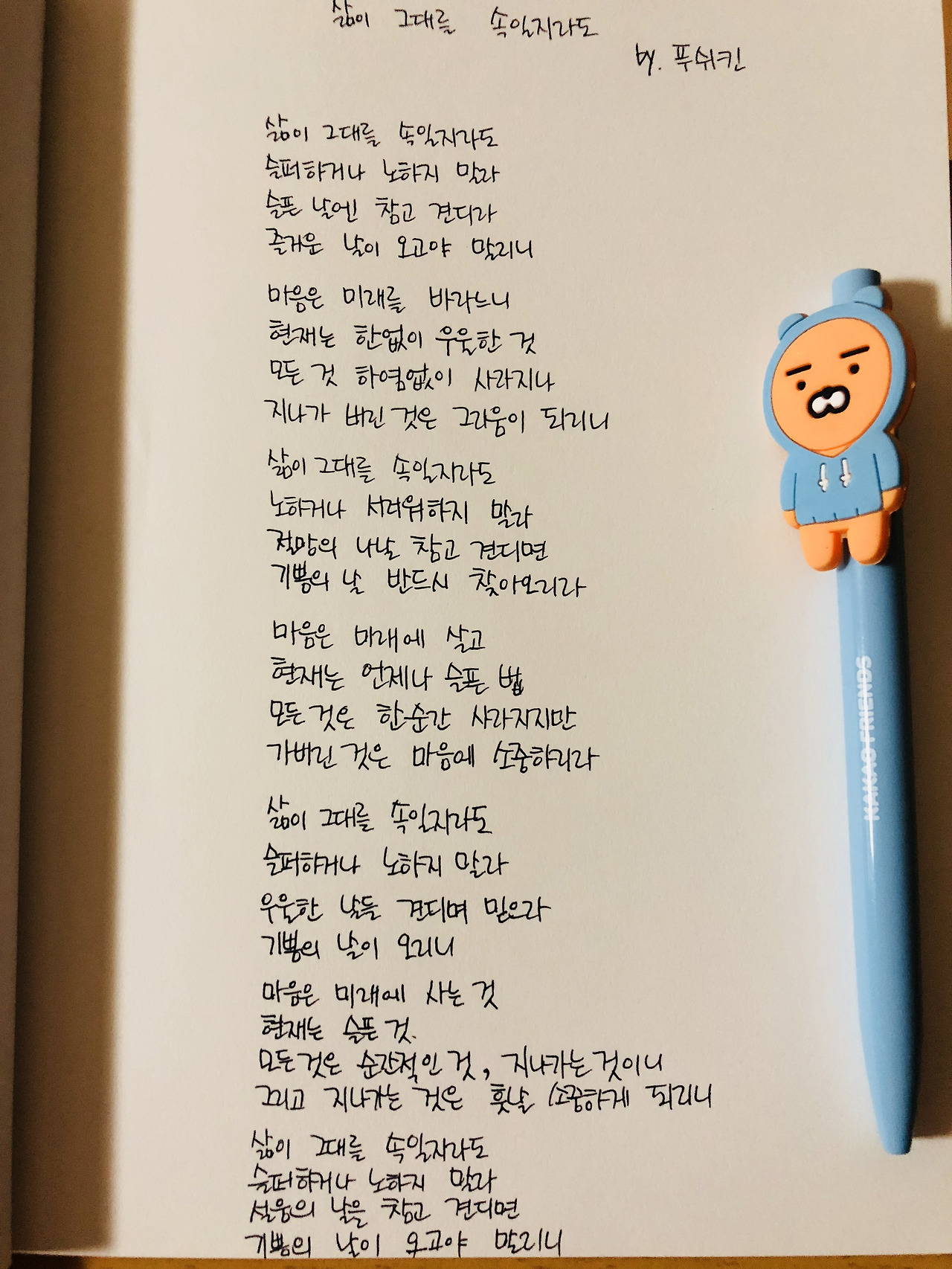 시필사_46일) 삶이 그대를 속일지라도 - 푸쉬킨