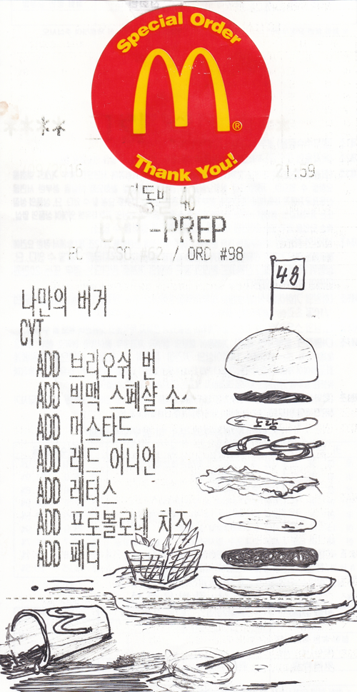 예전에 아주 잠깐동안 맥도날드에서 나만의 버거를 만들어 먹는 메뉴가 있었다. 번과 소스, 고기와 속재까지 모두 자유롭게 선택할 수 있어 말 그대로 ‘나만의’ 레시피를 만드는 것에 몰두하곤 했다. 여유가 되는 날엔 패티나 베이컨을, 그렇지 않은 날에는 치즈의 염분으로 빈 곳을 달랬다. 가격이 만원정도 해서 자주는 사 먹지 못했지만 일주일에 한 번 정도는 사치를 나만의 버거를 만들며 사치를 부리곤 했다. 친구들과 가지각색의 버거를 늘어놓고 하나씩 시식을 하면서 우리만의 만 원짜리 오마카세를 즐겼다. 어느샌가부터 그런 소소한 즐거움이 일상에서 줄어들기 시작했다. 이번 달 지출과 수입을 나열하는 매일의 연속, 다음 달은 얼마를 모으고 얼마를 써야 하는지가 매달의 주요 고민거리가 됐다. 하루하루 백 원 단위를 줄여가면서 살았었지만 그때만의 즐거움은 아마 다시 찾을 수 없을 것 같다. 예술은 배고파야 된다는 말을 나는 좋아하지 않았다. 마치 부자들이 미술을 끄적이다 그만두고 하는 핑계와도 같은 말처럼 들렸기에. 돌이켜보면 나는 꽤나 자격지심이 많은 사람이었나 보다. 비어있는 만큼 다른 것을 채울 수 있었다는 것을 이제야 조금은 깨닫는다.