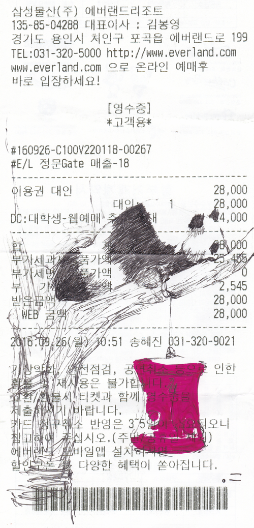 학교 동기들과 에버랜드에 놀러 갔던 날이다. 당시에는 전과하기 전이라 나는 디자인과에 몸을 담고 있었다. 과 특성상 함께 프로젝트를 진행하는 일이 잦았는데 그래서인지 선후배들과 금방 친해졌다. 물론 한창 유행하던 ‘오버워치’라는 블리자드의 게임이 발화점이 되어 우리는 거의 격일로 모여 pc방에서 밤을 새우고 뜨는 해를 함께 보며 집에 가곤 했다. 고등학교 때까지 나는 그것을 매우 위험한 행동으로 여겼다. 공부를 하지 않고서 다른 일에 시간을 쏟는 일. 그도 그럴 것이 장학금을 받지 않으면 고등학교와 대학 등록금을 충당하기 어려웠던 당시 가정형편이 꽤나 짙은 그림자를 드리웠기에 나로서는 어쩔 수 없는 자기 최면을 걸어야 했다. 다행히 재수 없이 부모님이 바라시던 서울대 디자인과에 입학했다. 등록금이라는 커다란 걱정을 하나 덜어내니 나도 조금은 자유를 하나씩 찾게 되는 건 어쩔 수 없었나 보다. 입학하고 일 년이 지나 담배를 배웠고 조금씩 모은 돈을 보태서 오토바이를 사기도 했다. 부모님이 좋아하지 않는 일, 이전에 나로서는 상상도 하기 어려운 위험한 행동들을 하나씩 추가하며 지금의 내가 됐다. 우리에 갇힌 동물들은 안온하다. 하지만 그들은 어쩌면 당장의 끼니를 스스로 해결하며 잦은 위험과 맞서야 하는 자유의 땅을 매일 그릴지도 모른다.