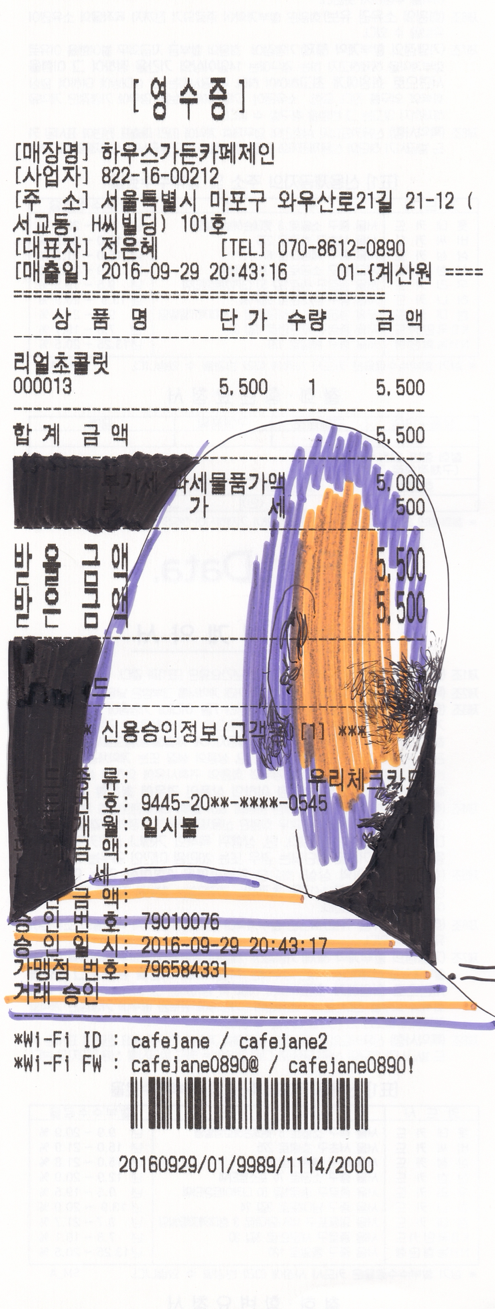 홍대에 자주 들르게 되면서 알게 된 단골 카페. 카페 제인과의 인연은 그렇게 시작됐다. 처음에는 흡연구역에서 사장님과 몇 번 목례를 주고받다가 우연한 계기로 서로의 삶에 대한 대화를 하게 됐다. 당시의 나는 21살, 이제 막 학생티를 벗어나려는 사내를 그녀는 꽤나 진지하게 대해주었다. 이성적인 교류가 아닌 사람대 사람으로서, 내가 성인이 되어서 처음으로 말을 트게 된 어른이었다. 당시 나는 사고의 흐름이 원활하지 않았다. 그래서인지 연필과 종이를 자주 찾았는데 두세 시간을 앉아있어도 눈치한 번 주지 않으셨으며 가끔 떡볶이나 간식을 사 와서 같이 나눠주시고는 했다. 사회라는 것에 첫발을 디딘 직후에 자아를 확립하는 그 정처 없는 시기에 안전하고 따뜻한 공간이 되어준 카페를 아마 오랫동안 그리워할 것이다. 지금은 문을 닫은 지 몇 년이나 지났지만 여전히 그 골목을 지날 때마다 카페 제인과의 추억이 선명하게 피어난다.
