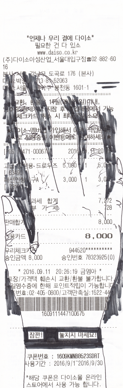 사랑은 승인불확실성이 꽤나 높은 결재서류와도 같다. 승인을 받을 수 있는지는 미지수이고 누군가는 웃는 얼굴로 서류를 찢어버릴지도 모르는 일이다. 그럼에도 우리는 매일 사랑을 찾아간다. 그러나 더한 모순은 계약 체결 직후 절박함과 소중함의 폐기처분에 있다. 이는 물론 계약 조건과는 다른 상황이기에 갑은 을에게 취소를 통보하겠다. 그러면 을은 또 다른 서류를 들고 사인을 받기 위해 고군분투를 반복한다. 그 과정에서 갑은 을이 되고 을은 갑이 되기도 하며 수많은 관계 역전이 일어나게 된다. 그래서 우리는 사랑을 모른다. 갑과 을이라 칭하지만 실은 그 누구도 갑과 을이 아니며 이 변칙적인 변화와 전환의 법칙을 설명할 수 없을 것이다. 그러나 또한, 그래서 우리는 사랑을 하겠다. 복권은 밑져야 본전이기 마련이다.