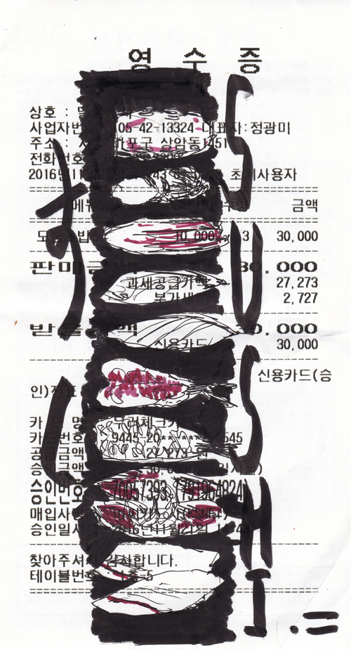 엄마는 나를 가졌을 때 회전 초밥집에서 50 접시를 먹은 적이 있더랬다. 그 때문인지 식탐이란 것이 바닥난 나이지만 초밥만큼은 꽤나 설레는 메뉴로 남아있다. 나 또한 어릴 적에는 회전초밥 뷔페의 셰프들이 그다지 반기지 않는 손님이었다. 학생 기준 2만 3천 원 정도였던가. 나는 자리에 앉아 40 접시는 너끈히 먹고 일어났다. 우리 가족은 한 달에 한 번 정도 그 초밥집에서 외식을 했었는데 아마 그들만의 블랙리스트에 내가 있지 않았을까 싶다. 대학생이 된 나는 17킬로를 감량했고 더 이상 음식점의 블랙리스트에 오를 수가 없었다. 모둠초밥 12피스도 겨우겨우 먹는 소식가가 되어버렸으니까. 어릴 때에는 연어와 새우, 그리고 참치만 고집하던 나는 양이 줄면서부터 어떤 종류의 합이 맛이 좋은지에 대해 생각하게 됐고 다양한 종류를 조금씩 먹는 취미가 생겼다. 때문에 일본 여행에서는 늘 초밥집을 먼저 찾게 됐다. 한국보다 훨씬 다양하고 질 좋은 초밥의 향연은 내가 일본에 가는 최우선의 목적이 되기 충분했다. 아직도 작년 도쿄역 앞에서 먹었던 감태가 말린 성게 알 초밥을 잊을 수가 없다. 이 글은 여기서 그만 줄여야겠다. 쓰면 쓸수록 비릿한 감칠맛이 허구로 입안에 감돈다.