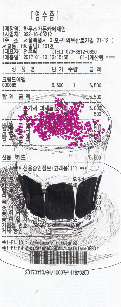 크림드에펠을 따뜻하게 먹어 본 날. 늘 차갑게 먹는 메뉴였지만 겨울담배를 피우고 얼어버린 손은 따뜻한 잔을 소망했다. 따뜻한 크림드에펠을 한 입 마시자마자 나는 도로 밖으로 나가 담배를 태웠다. 따뜻한 에스프레소 위에 놓인 차가운 크림이 겨울에 피는 담배와 너무도 잘 어울렸다. 겨울의 담배는 유난히도 맛이 좋다. 온통 차가운 세상에서 유일하게 그것만이 뜨겁게 불타고 있다. 들이마시는 연기는 뜨거우나 이내 내뱉자마자 김인지 연기인지 모를 무언가로 흩어진다. 그 애매한 호흡과도 같은 음료였다. 차갑게 입술에 닿은 크림 뒤로 밀려오는 뜨거운 에스프레소의 감촉, 그리고 불을 붙여 들이마신 연기와 내쉴 때의 찬바람은 겨울의 인상이다. 서로 다른 온도의 충돌과 뒤섞임으로 그 향미가 짙어지는 계절이었다.