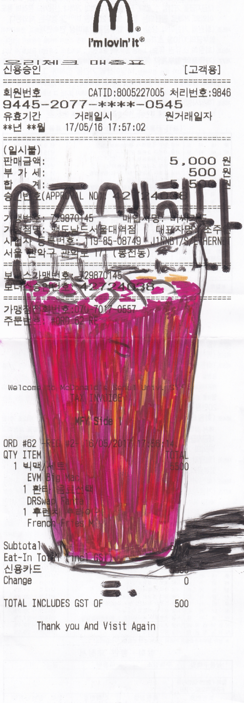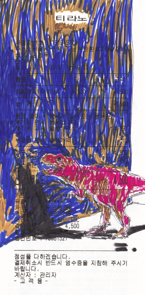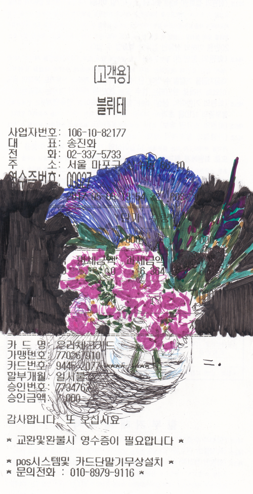 카페에 들어서자 좌석을 제외한 모든 공간에 가득한 화분을 볼 수 있었다. 식물을 좋아하는 나는 함께한 후배와 자리를 잡기 전에 카페를 서성이며 그곳에 가득한 풀내음과 꽃향을 만끽했다. 자리에 앉으니 테이블마다 작은 병에 담긴 꽃들을 볼 수 있었다. 늘 그렇듯이 나는 드로잉북을 꺼내 펜을 집었다. 가끔은 그냥 예쁜 꽃이나 그리는 별 야망 없는 작가가 되는 것도 나쁘지 않겠다는 상상을 해본다. 어떠한 것에도 구애받지 않고 그저 보편적인 아름다움을 붓에 담는 시간을 그려봤으나 눈앞에 쌓인 영수증을 보며 이내 그것이 꿈일 수밖에 없는 이유를 확인한 나였다.