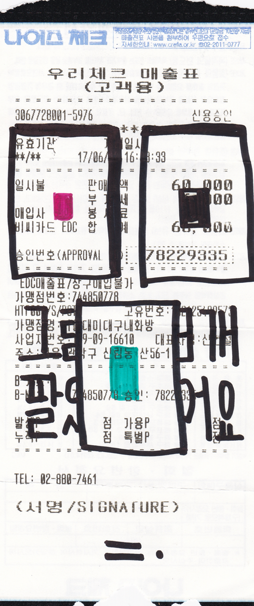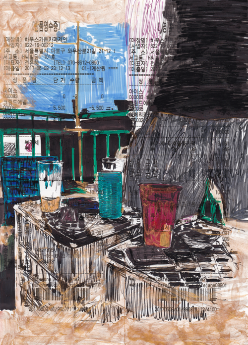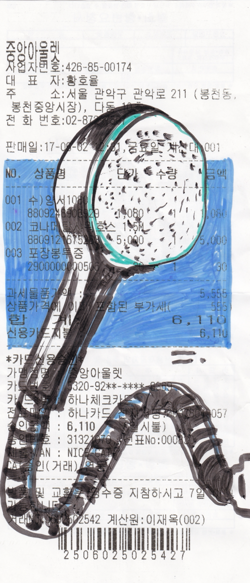 처음으로 그림을 팔았던 날. 실은 물물 교환에 가까웠던 판매였다. 당시 일하던 미술학원 원장선생님 중 한 분은 필름 카메라를 모으셨다. 칼자이스 렌즈가 끼워진 콘탁스의 명작 ST가 그중 내 눈에 들어왔고 내가 관심을 보이자 선생님께서는 영수증 그림 3점과 바꾸는 것이 어떻겠냐고 제안하셨다. 영수증 작업은 시간이 지나면서 변할 수밖에 없다고 설명을 드리자 선생님은 프린팅을 원하셨고 나는 스캔본을 두 점을 더 인쇄해서 액자에 담아드렸다. 그렇게 손에 들어온 ST는 차갑고도 무거운 카메라였다. 대부분의 필름 카메라가 주는 인상과는 다르게 촬영할 때 차가운 칼날과도 같은 셔터음이 좋았다. 그것은 마치 빛의 연속을 단칼에 베는 느낌이었다. 그리고 그 한 장마다의 무게가 무거웠다. 단순리 빛을 가두는 것이 아니라 그것을 덩어리째로 썰어내는 감각을 주었다. 잔보다 비싸진 필름값도 한몫했지만 나는 이 감각으로 인해 필름의 장수가 전보다 현저히 줄었다. 함부로 자를 수 있는 풍경은 없다. 디지털 촬영의 보급화로 우리는 그 무게감을 잃었다. 사진마다의 무게는 0으로 수렴했고 선명한 화질에 담기는 정보는 훨씬 방대해졌으나 이전에 잠겼던 셔터를 누를 때의 감각이나 사진을 통한 회상의 무게가 줄었다. 이 아쉬운 마음은 결국 작업에까지 옮겨갔고 지금의 목탄 작업의 출발점이 되었다.