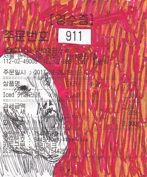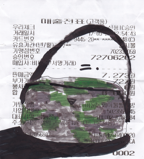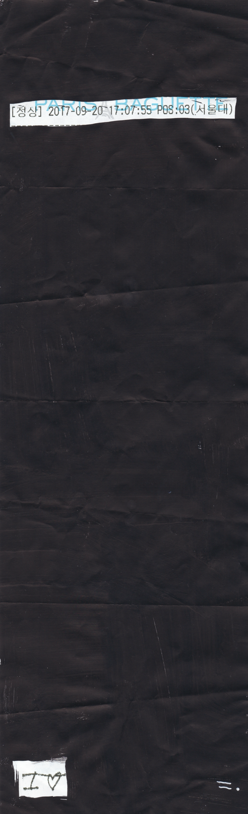 영수증에 인쇄된 모든 것은 시간이 지나면 흐릿해지고 결국에는 지워진다. 아마 이 영수증의 글자칸은 지금쯤 하얀 네모로 남아 아무것도 보이지 않을 것이다. 남겨둔 글자는 “I love.” 다. 사라지는 글자가 사랑인지 아니면 사랑의 모양인지는 여전히 잘 모르겠다.