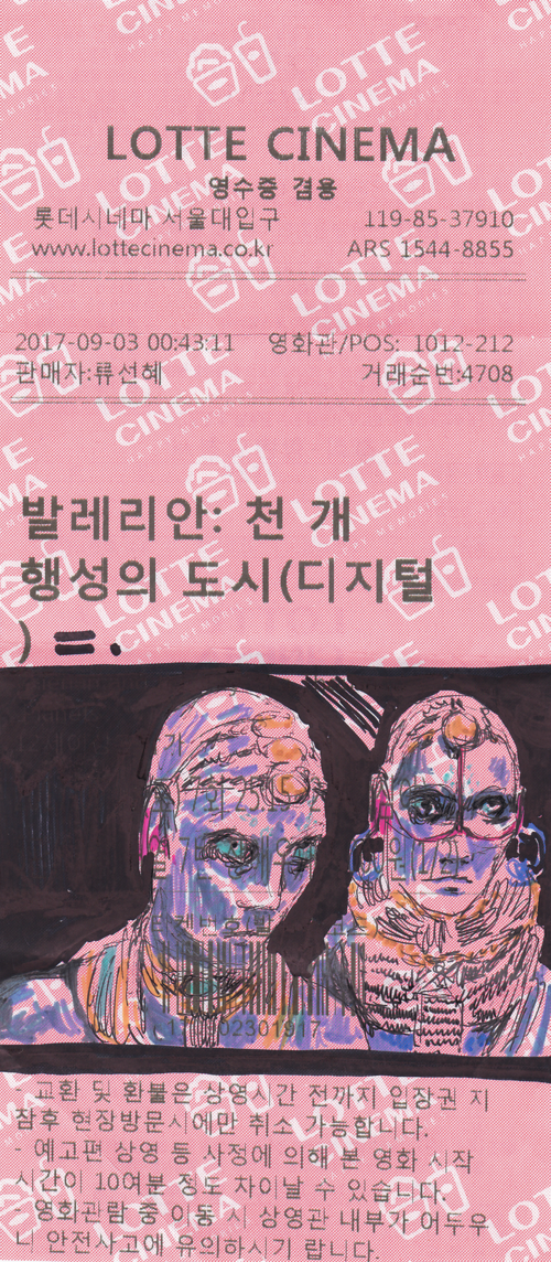 판타지 영화들은 대부분 현실에 입각한 세계관, 그러나 아주 약간은 비껴간 형태와 현상들로 우리에게 신비로움을 조성한다. 나는 그런 기묘함이 좋았고 그 비껴간 지점들이 불규칙적으로 늘여놓아 질 때마다 탄성을 질렀다. 흔히들 이야기하는 B급 영화들 속에서도 나는 그 비껴감이 좋았다. 영화라는 것은 사람마다의 기준이 분명 다르겠지만 내게 있어 영화란시각적 정보와 청각적 정보가 한데 엉겨 붙어 자극을 선사하는 시간이다. 그렇기에 사실 인물들의 관계나 서사에는 그다지 관심이 없다. 좋아하는 영화들은 대부분 촬영 기법이나 영상 구도, 혹은 음악 감독의 역량이 두드러지는 것들이 대부분이다. 그리고 그러한 것들을 극대화하는 것은 ‘기묘함’이다. 발레리안은 흔한 판타지 영화 중 하나였지만 인물의 생김새와 그 움직임에서 느껴지는 기묘함은 좋았다. 하지만 우리가 알고 있던 원래의 상식에 약간은 겹쳐지는 것들이나 그 비껴간 지점이 불분명할 때, 기묘함은 배가 된다. 그런 의미에서 이 영화는 너무도 명확한 빗나감이 보였기에 적당한 자극으로 남을 뿐이었다. 대사나 인물들의 표정만으로는 전달할 수 없는 이야기가 있다. 설명을 아무리 들어도 느껴지는 것 하나 없는 그림이 있듯이 친절한 영화는 끌림이 없다. 그림 같은 영화는 도통 무슨 말인지 몰라야만 했다. 나는 흐릿한 상과 소리를 헤쳐가는 기묘함을 좋아한다.