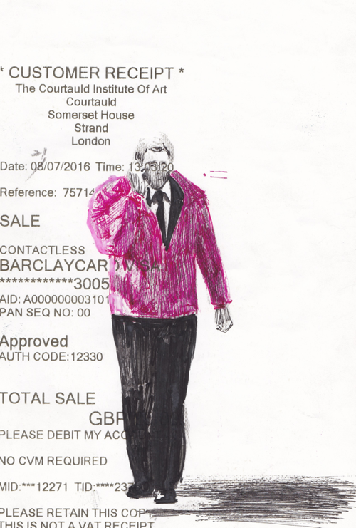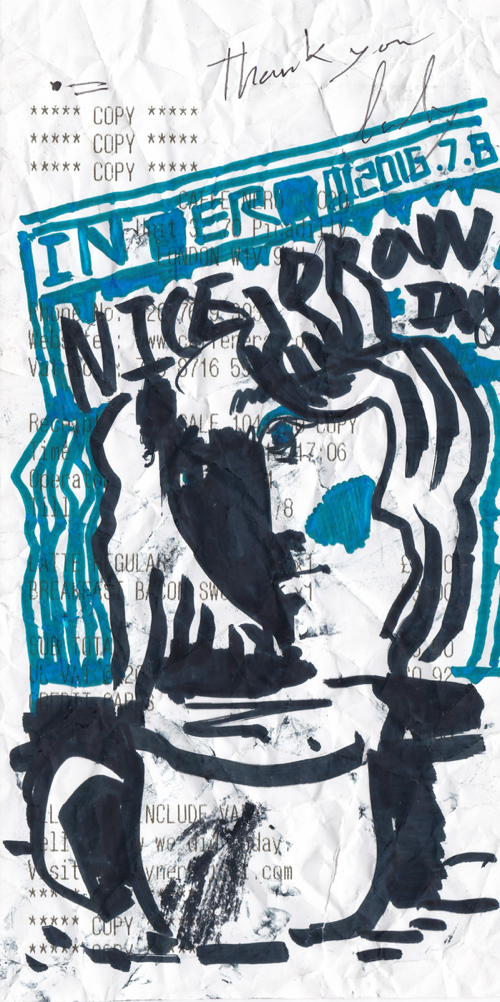 “다시 자세히 보세요. 예쁘지 않나요? 저는 아까 보면서 영수증 위에 그림을 올리는 것이 참 멋지다고 생각했어요. 일기 같기도 하고, 뭔가 갤러리에 없을 것 같잖아요.”