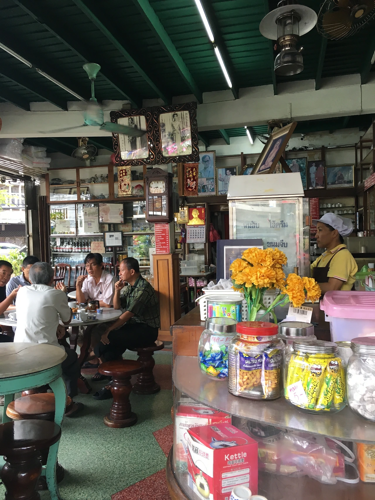 그 테이블에서 빠텅코(주로 두유에 적셔먹는 도넛. 아침 식사로 많이 먹는다.)를 먹고 있길래 주문을 했더니 테이블에 있던 한 분이 그 가게에서 팔지 않는 메뉴라고 알려준다. 그러면서 자기가 이 가게의 주인이라고 소개를 하며 빠텅코 하나를 냉큼 짚어 건넨다. 외부음식은 못 먹게 하는 게 보통인데 누군가 사 온 음식도 아무렇지 않은, 매상 같은 건 신경도 안 쓰는 주인과 손님으로 온 친구들. 주인은 그 테이블에 오래 눌러앉아 오랫동안 수다를 나눈다.