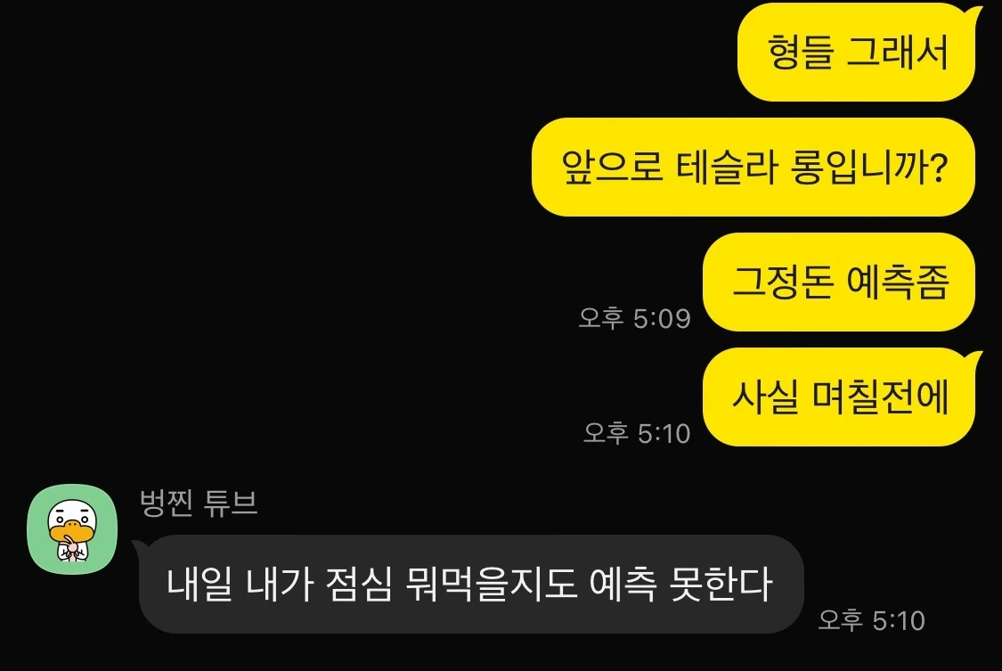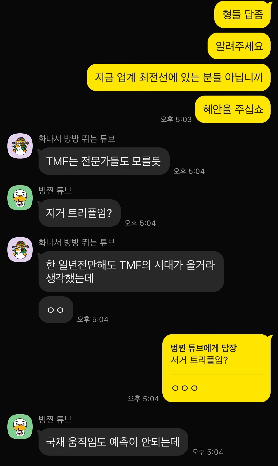 최근 내가 미국 채권에 대해 물어봤다. 형들은 각자의 의견을 이야기하던 중, 내가 물어본 종목이 단순한 국채가 아니라, 트리플 레버리지(3배로 배팅되는 미국채)라는 것을 알게 되었다. 그러자 형들은 국채도 예측하기 어려운데, 트리플 레버리지를 예측하라는 나에게 주먹이 마렵다고 했다.