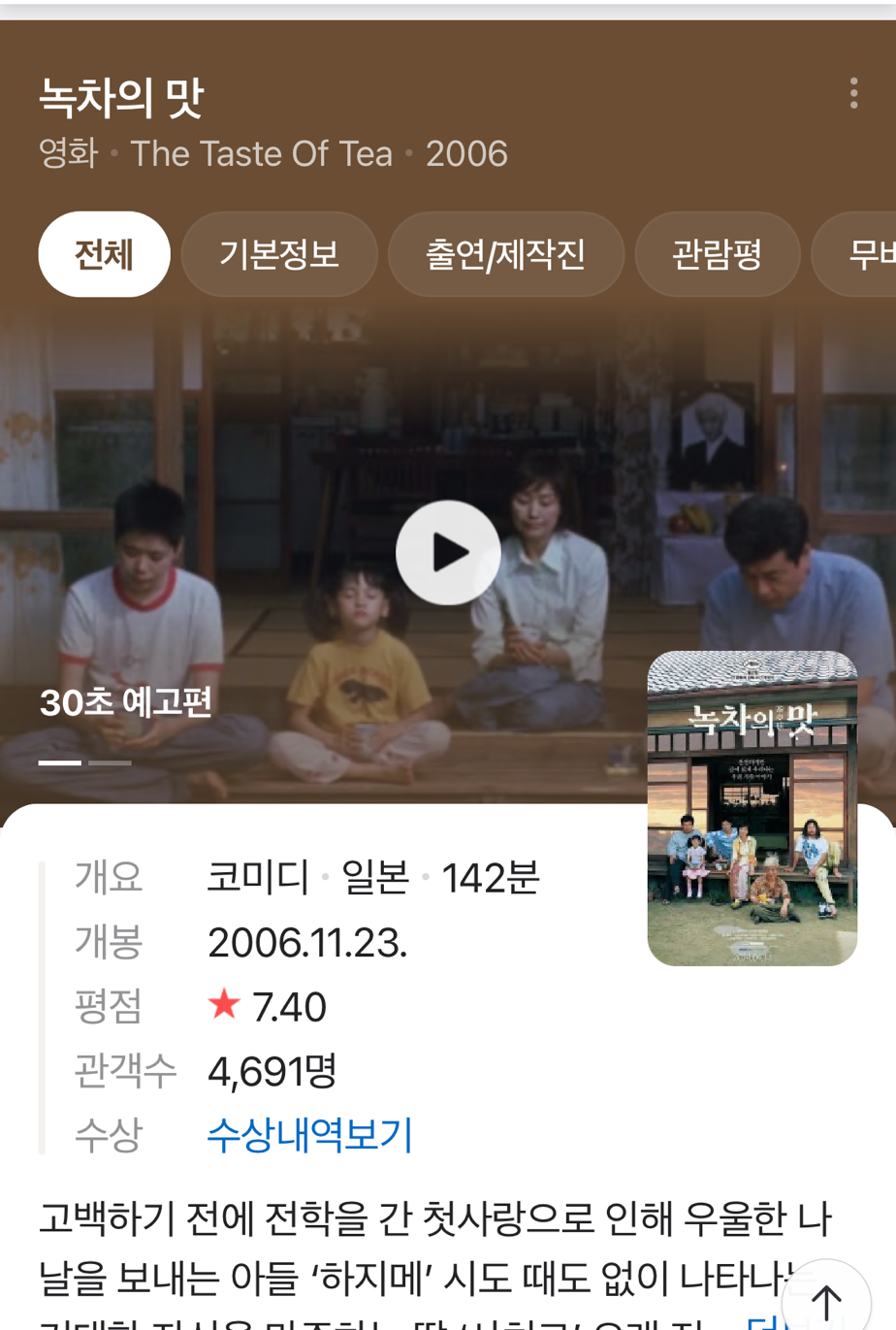 영화 제목은 ‘녹차의 맛’이다. 이름부터가 예사롭지 않다. 나는 처음 듣고 호두마루니 녹치마루니 하는 아이스크림이 떠올랐다. 물론, 이런 생각을 하는 건 내가 누추한 사람이라서 그렇고, 이 글을 읽는 귀한 독자분들은 결코 그런 상상을 하지 않을 거라 믿는다.