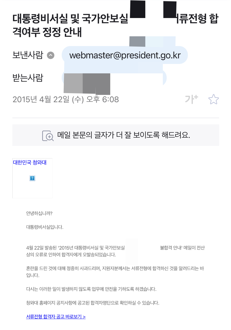면접관 중 두 명의 눈빛이 차가워졌습니다.
