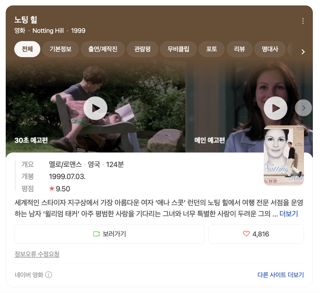 노팅힐에서 만난 사랑의 마법