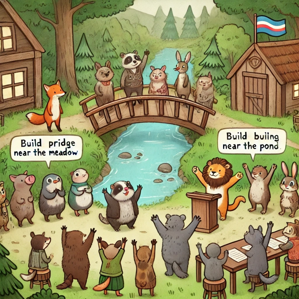 푸른 숲 속 마을에서는 모든 중요한 결정을 회의를 통해 결정했어요.