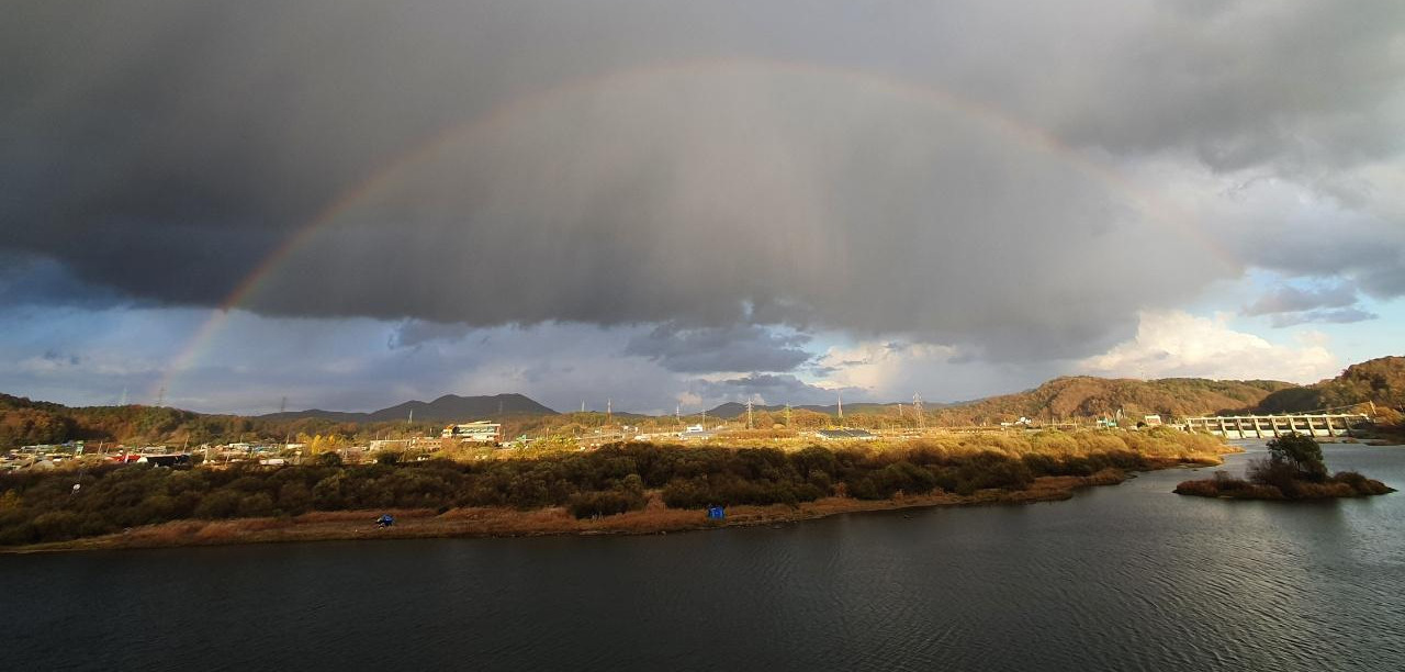 사무실로 돌아와 일을 하고 있는데 직원이 느닷없이 소리를 쳤다. “팀장님! 밖에 무지개가 떴어요. 빨리 나와보셔요. 이건 기적이야!”소리를 듣자마자 밖으로 나가니 금강 위로 거짓말처럼 무지개가 떴다. 지금까지 본 무지개 중에 가장 큰 무지개였다. 무지개가 이토록 아름다운 줄 처음 알았다. 무언가에 아름다움을 느낀다는 건 자신이 아름답기 때문이다. 무언가를 느낀다는 것은 느낌의 본질을 가지고 있다는 뜻이다.