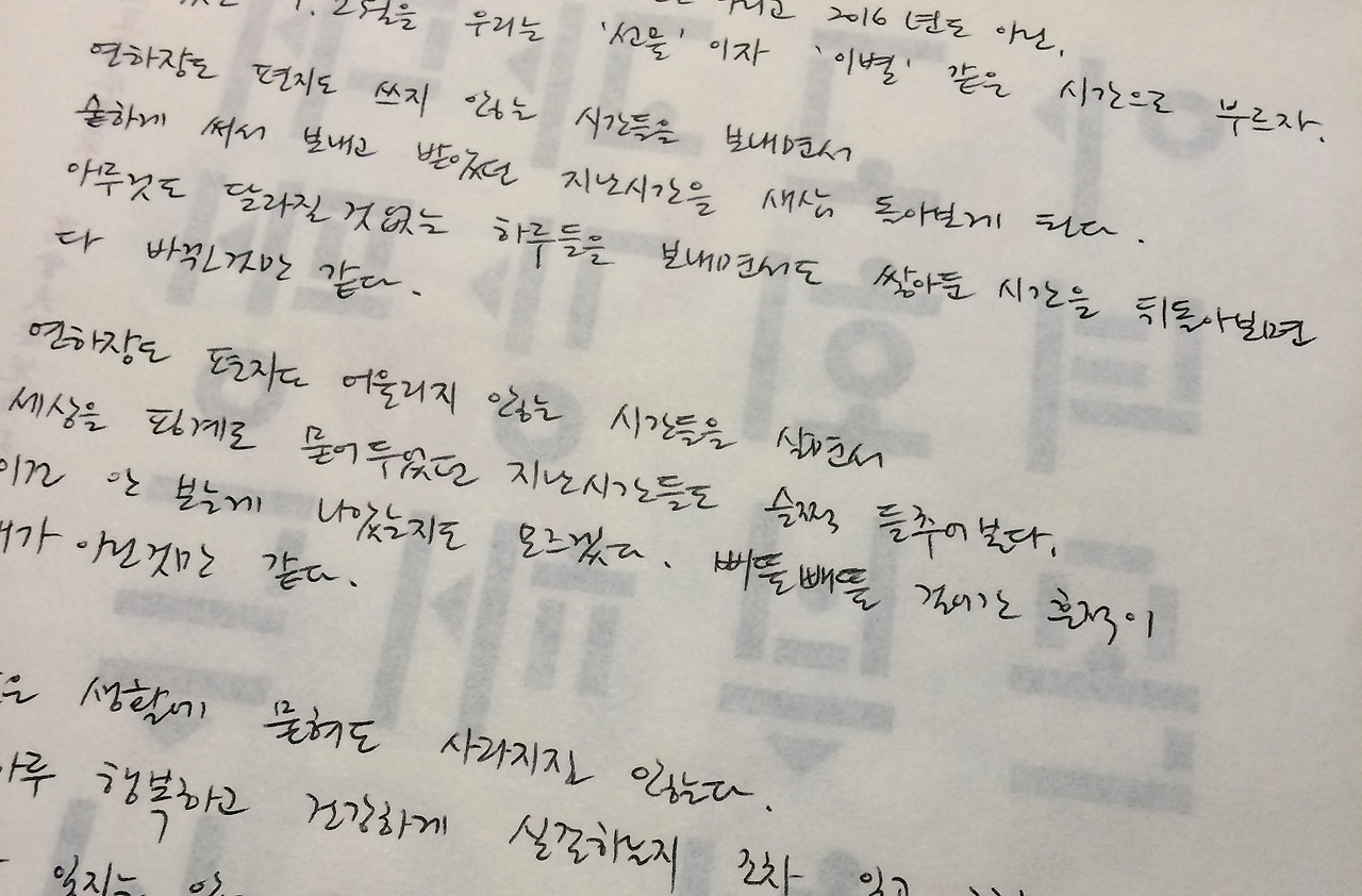 연하장도 편지도 쓰지 않는 시간들을 보내면서 숱하게 써서 보내고 받았던 시간들을 새삼 돌아보며, 요즘의 나는 도통 글씨로 무언가를 쓰는 일에 멀어져 있는 건 아닐까 생각했다.