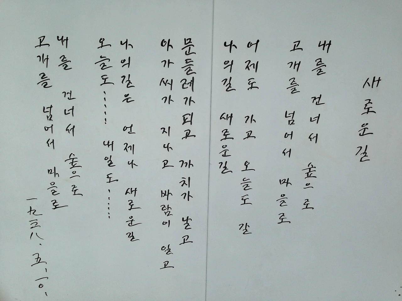 시간이 지나면서도 나는 내가 존경하거나 좋아하는 사람의 글씨를 궁금해한 적이 많다. 어떤 필체는 내가 갖고 싶다고 생각했던적도 있다. 중학교 때에는 좋아하는 선생님의 칠판 글씨를 따라 썼다. 그리고 언젠가부터 누군가의 글씨를 보면 조금은 그 사람의 성격이나 내면이 짐작될 때도 있다. 물론 이건 어떤 증명된 사실도 아니고, 누구에게 일반화하여 이야기할 수 있는 부분도 아니며 지극히 나의 입장에서 나의 언어로만 이해할 수 있는, 그러니까 그냥 나만 알 수 있는 부분이긴 하다. 그리하여 이런 이야기들을 글로 써놓아도, 쓰고 나서도 이 글이 누군가에게 이해될 수 있을지도 알 수가 없다. 게다가 그 짐작이 모두 다 맞는 것은 아니다. 그러므로 사실 누군가에게 이야기 한들 별 의미 없는지도 모른다. 그러나 나는 글씨, 필체라는 단어보다도 더 진한 느낌의 '육필(肉筆)'이라는 단어가 가지는 무게감을 생각한다. 사람의 몸으로 할 수 있는 수많은 흔적 중에 가장 고유한 것이 필체가 아닐까 했다. 글씨가 글자 하나하나의 생김을 말한다면, 필체는 어떤 문장이나 문단 전체를 보고 판단하는 느낌이다.(사전적 의미를 거론하는 것이 아니다.) 똑같이 생긴 사람이 이 세상에 아무도 없듯이 똑같은 글씨를 쓰는 사람은 아무도 없을 것이라 생각하면서.(필사나 모사는 흡사한 것의 극대화이지 자연스러운 현상은 아니므로.)