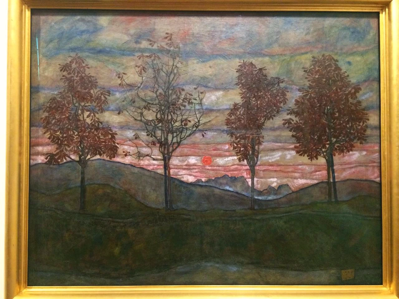쉴레의 그림 중에 내가 가장 기대했던 그림은 사실 <four trees>라는 작품이다. 소설가 한강의 <채식주의자>의 책 표지 그림으로도 사용되었던 이 그림에는 나 혼자만 느끼며 가지고 있는 시간의 먹먹함이 있다. 그림은 혼자만의 세계의 나로 소환하는 능력이 있다. 설명할 수 없는 그 순간은 사진처럼 머릿속에 박혀있기에 그 그림 앞에 서면 그때의 순간과 지금 나의 이 순간에 어떤 교차점과 공통점이 있을까 스스로 궁금했던 것일지도 모른다. 그러나 그 그림은 레오폴드 미술관에서 찾을 수는 없었다. 다만, 두 그루의 나무가 서 있는, 흡사 네 그루의 나무가 있던 그 그림의 느낌과 흡사한 그림이 있었다. (후에, 벨베데레 궁전 Belvedere Palace에서 four trees를 볼 수 있었다.)
