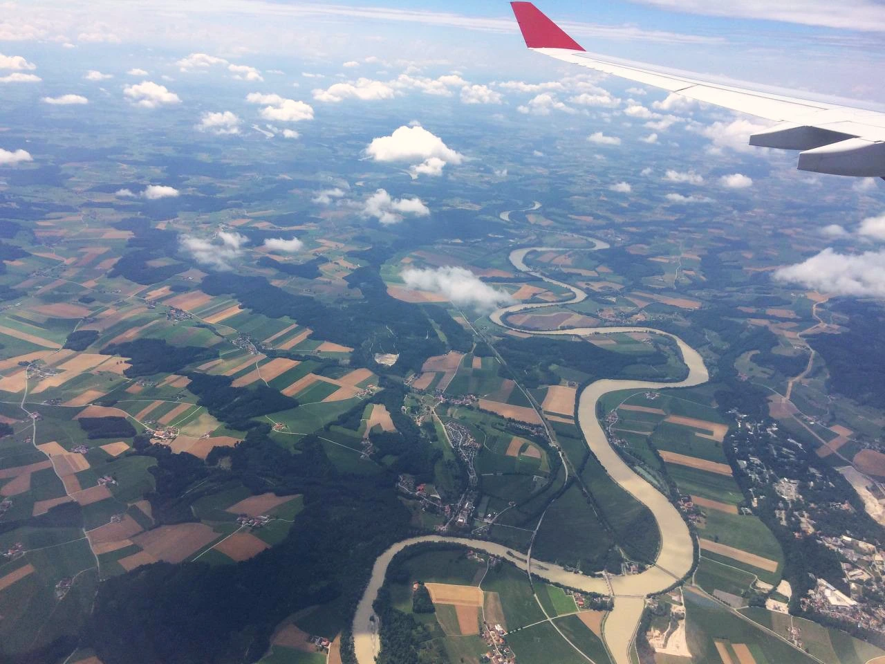 + 흑해를 지나 동유럽으로 막 들어와 비행 중에 발견한 모습. 구불구불한 강과 불규칙적으로 잘린 농토는 퀼트 조각처럼 정겹다.