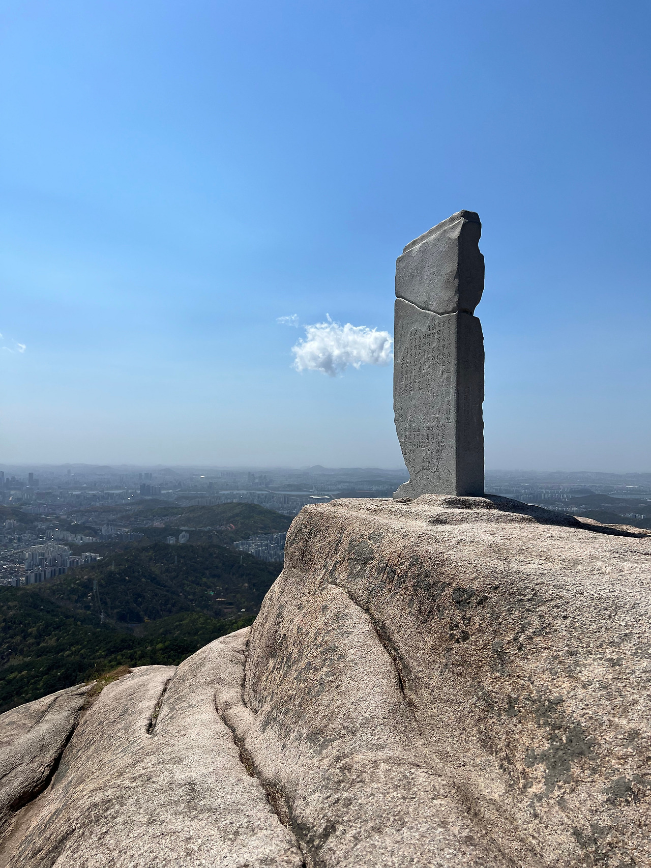 나는, 신라 진흥왕이 북한산 순수비(신라가 한강 유역을 장악하고 영토를 확장한 기념을 하기 위해 직접 왕이 산에 올라 비석을 세웠다)를 세웠다는 그 비봉에 올라가 보고 싶었다. 지금 비석은 모조품이고 진품은 국립중앙박물관에 소장되어 있다. 길은 더 짧게 잡았지만, 이번엔 시선이 멀리 갔다. 바위와 성벽, 이름을 가진 봉우리마다 오래된 시간이 겹쳐 보였다.