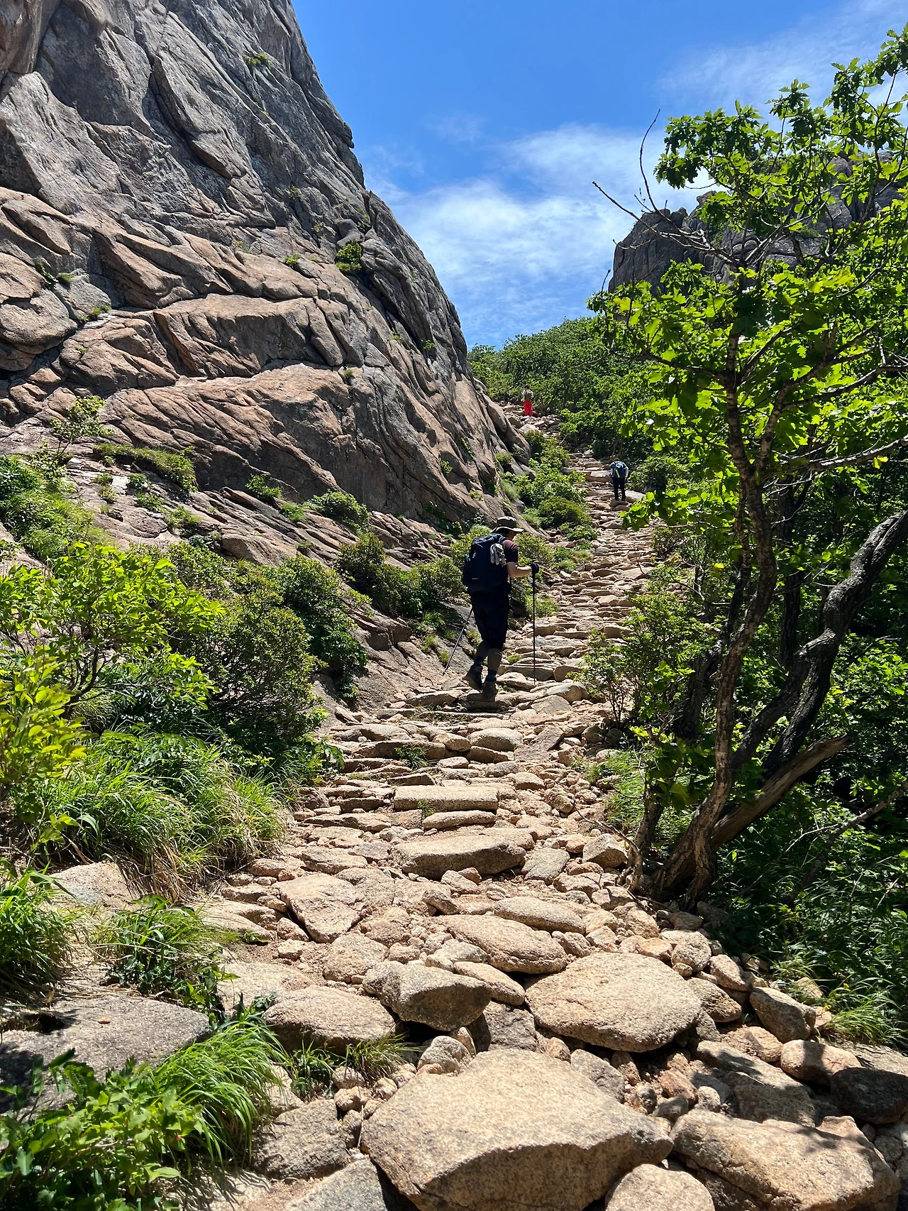해발 1000m가 넘는 곳에서 봉우리들을 오르다 내리 다를 반복하는 시간 속에서 가장 재밌었던 바위는 단연 킹콩바위였다. 납작한 뒤통수를 쓰담쓰담해주고 싶은 누가 봐도 킹콩. 생각보다 크기가 커서 카메라 안에 다 담기가 쉽지 않았다. 킹콩바위 이외에도 이런저런 형태로 내게 상상력을 자극하던 기암괴석들의 웅장함에 정신을 놓으며 걸었다.