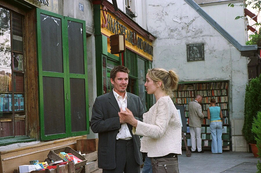 남자 주인공(에단 호크) "제시"는 그녀를 만나기 위해 길고 긴 에움길에 들어선다. 그녀와의 일들과 자신의 이야기를 글로 쓴다. 목적은 그녀를 찾기 위한 것. 어디선가 그녀가 나의 책을 읽고 있으리라는 믿음, 막연한 희망, 그러나 꼭 그녀를 찾겠다는 의지, 그것이 진정한 사랑일 것이라 나는 생각한다. 우연한 만남을 쉽게도 '운명'이라 부르고, 아찔한 욕망과도 같은 하룻밤의 일을 '사랑'이라고 쉽게 말하는 젊음이 전부는 아니라고 영화가 말해주는 듯 싶었다. 그는 진정으로 그녀를 사랑하고 있었다. 어디에든 존재할 것으로 믿고.