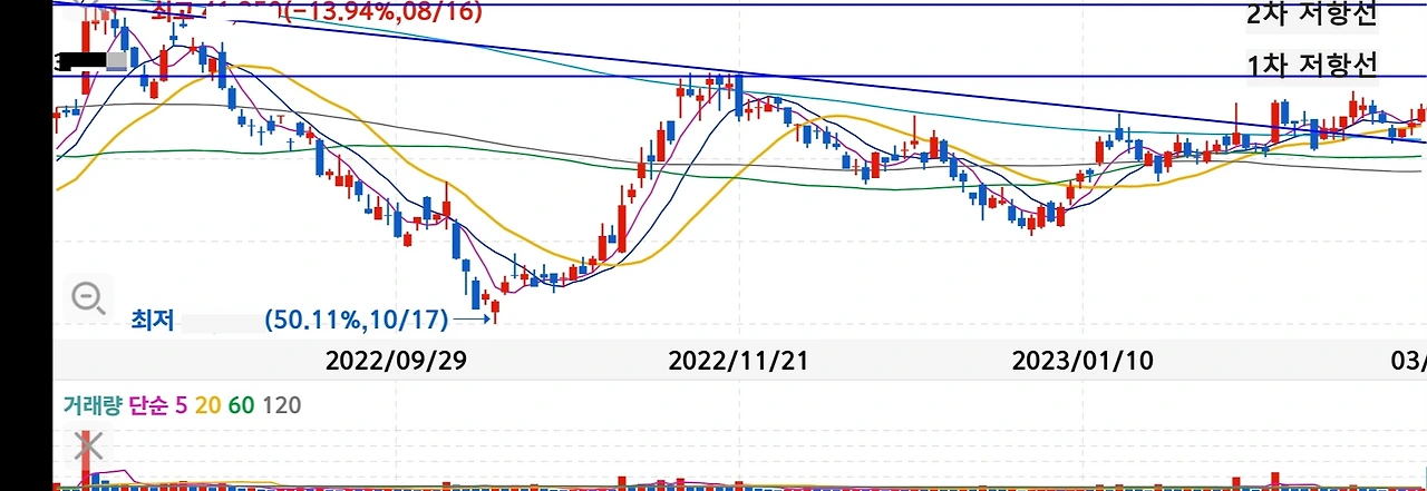 -도전 성공 시 본전 매물들 일부 출회될 수 있으나 2차 저항대까지는 무난하게 상승하리라 예상됨.