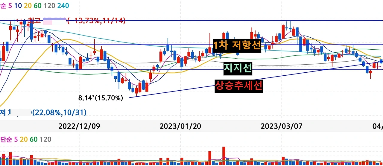 4.12(수)/ 1차 저항선을 티 나지 않게 뚫으면서 매집함.