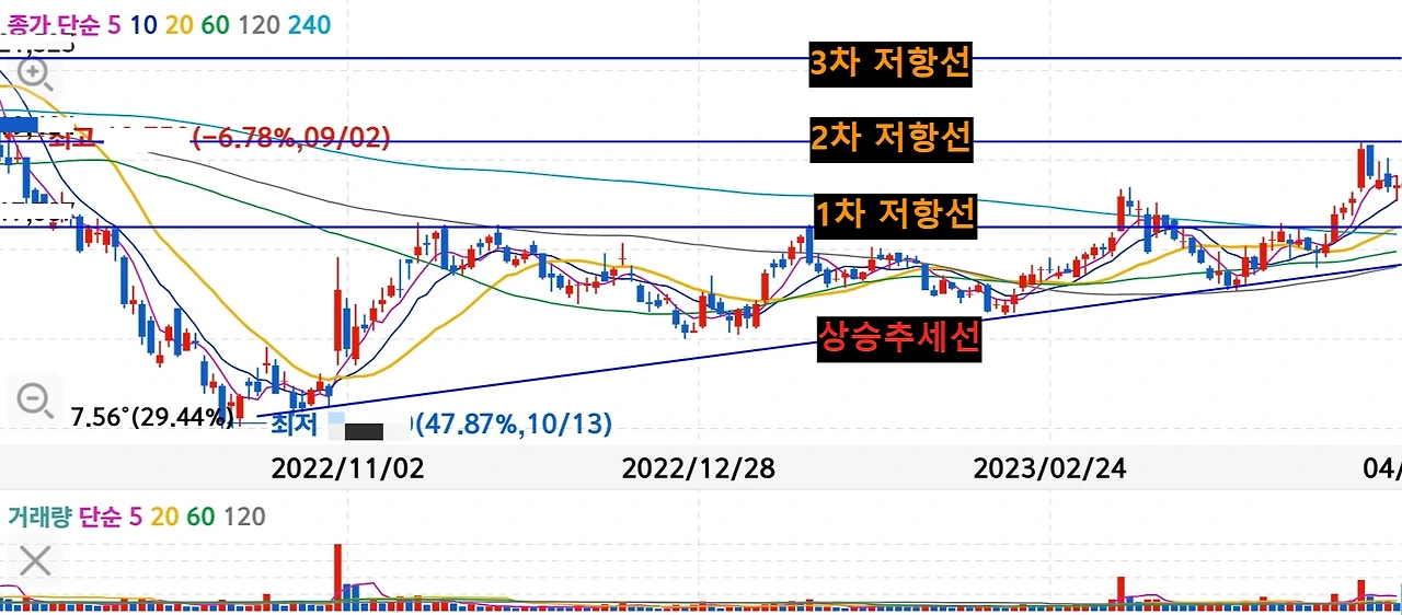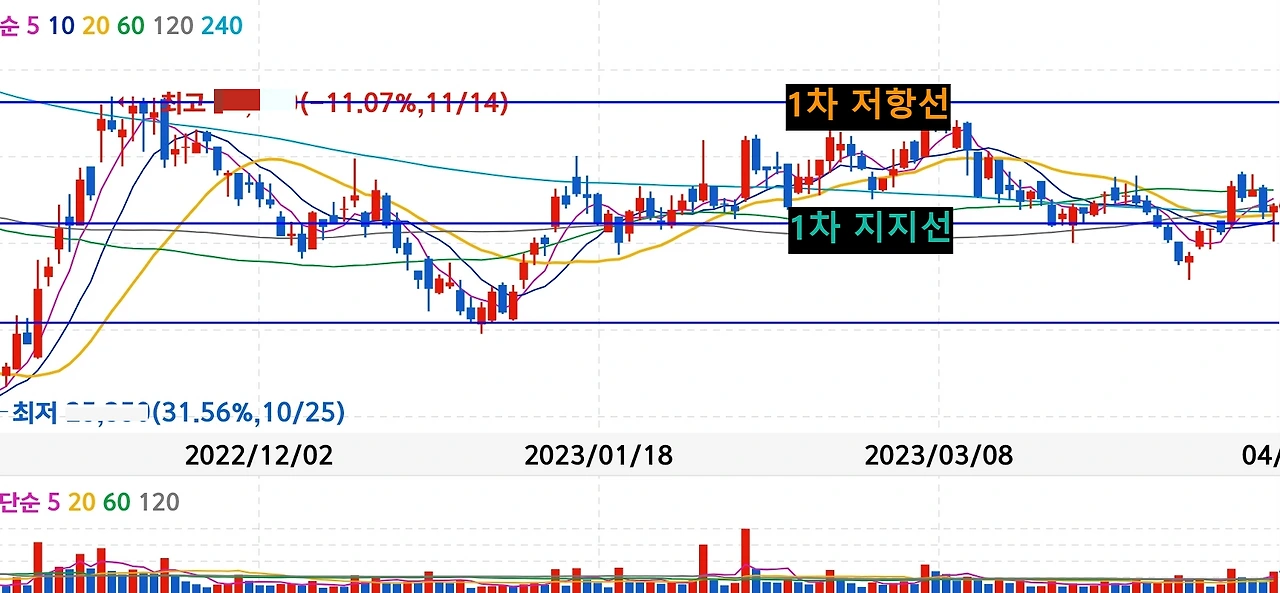 - 1차 저항선은 이제 1차 지지선으로 바뀐 상태임.