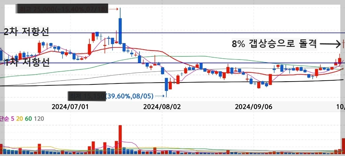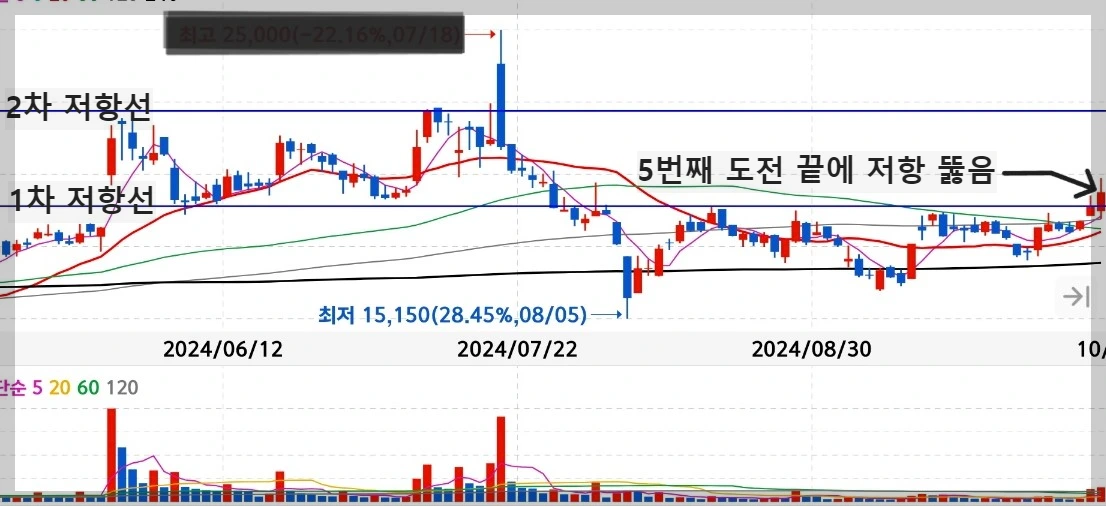 <[솟아라] 10.16. 다섯 번째 도전 끝에 1차 저항선 뚫음>5번의 도전 끝에 중요한 저항자리를 뚫어내다!