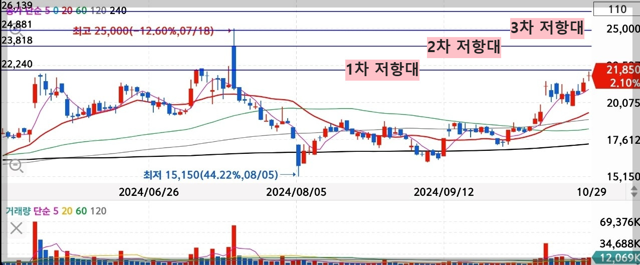 /강한 저항세력(매물대)을 무너뜨리려는 공방전으로 보이는데, 내일이면 세력의 의도를 알 수 있을 것임