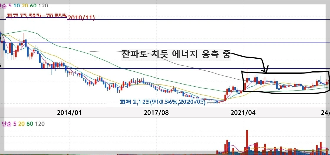 /[솟아라]의 월봉을 보고 있노라면 기가 막힌다. 태풍이 몰아치기 전의 잔잔한 바다가 그렇듯 사방이 고요해지며 잔파도가 밀집하면서 에너지를 응축시키고 있다.
