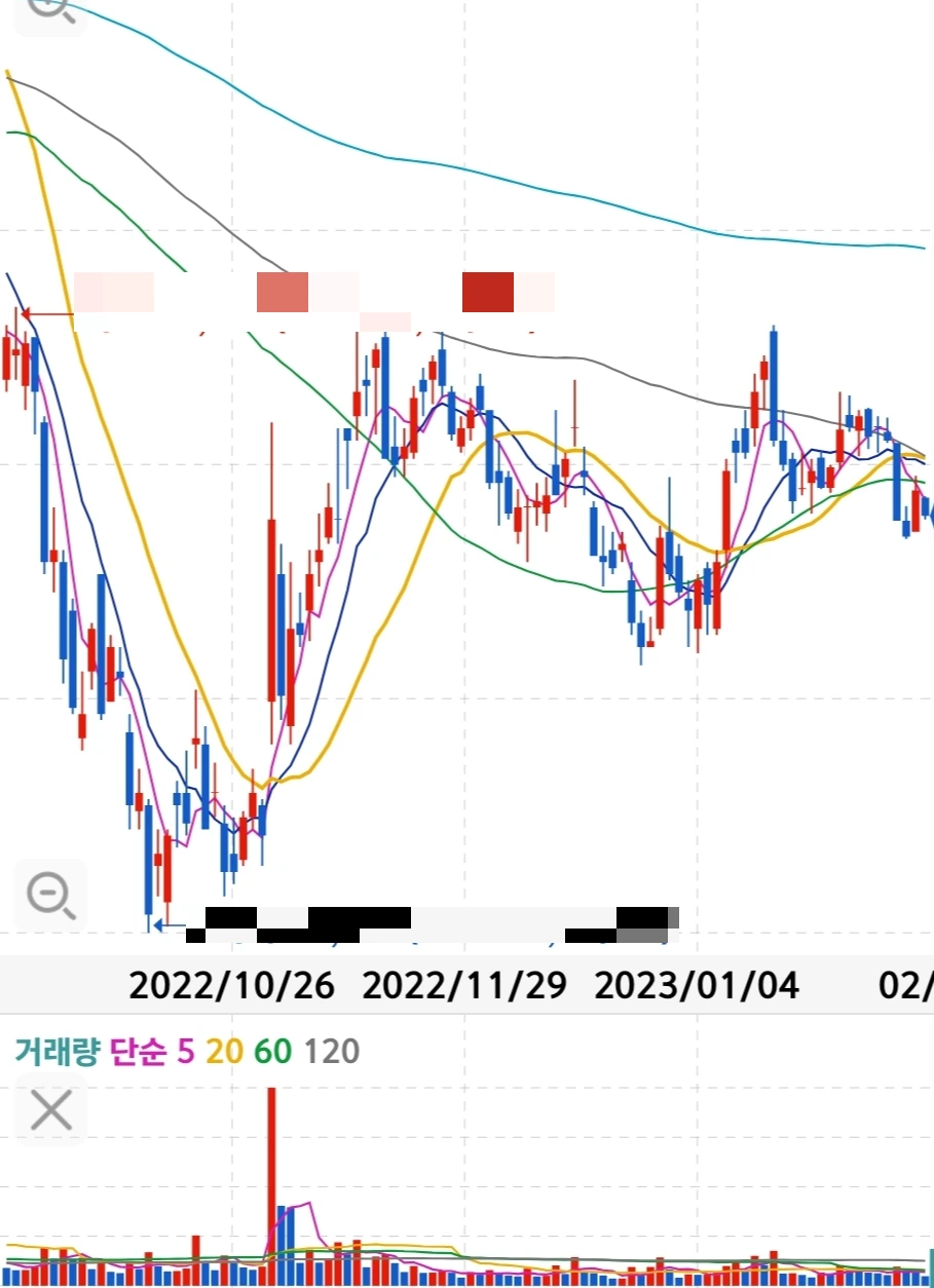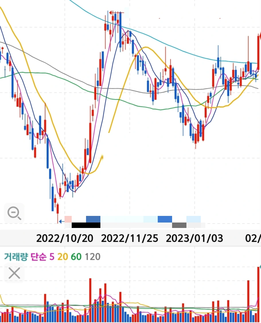2022.10.13 수익률 -36.57%에서 오늘 수익률 -18.7%대 까지 올라오긴 했지만, 이번주 월요일 검은색 120일선(중기 이평선)을 크게 이탈하여 재탈환할 의욕을 잃어버린 모양새다. 세력들의 의도를 정말 읽어내기 힘든 교활한 종목이다. 수많은 예정된 호재들, 회사의 매출액과 영업이익 증가, 그리고 부채비율의 감소라는 뜨거운 감자가 있음에도 무거운 몸놀림으로 개미들을 농락하는 중이다.