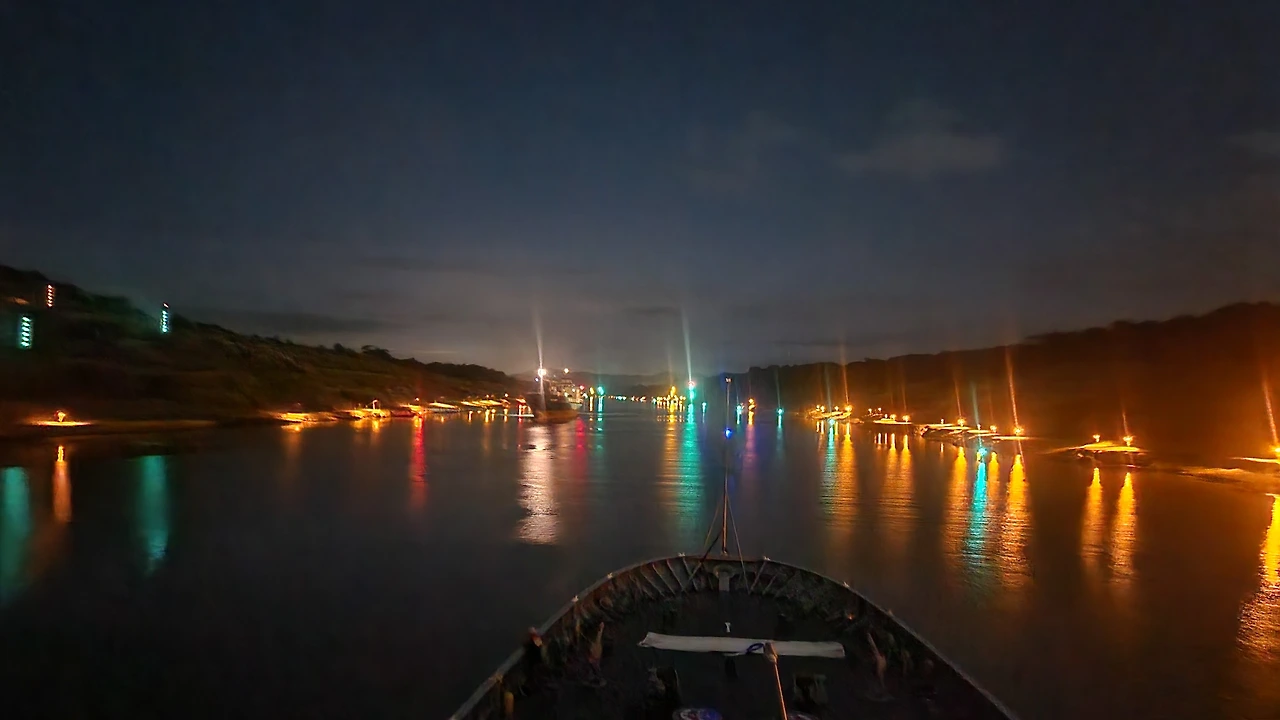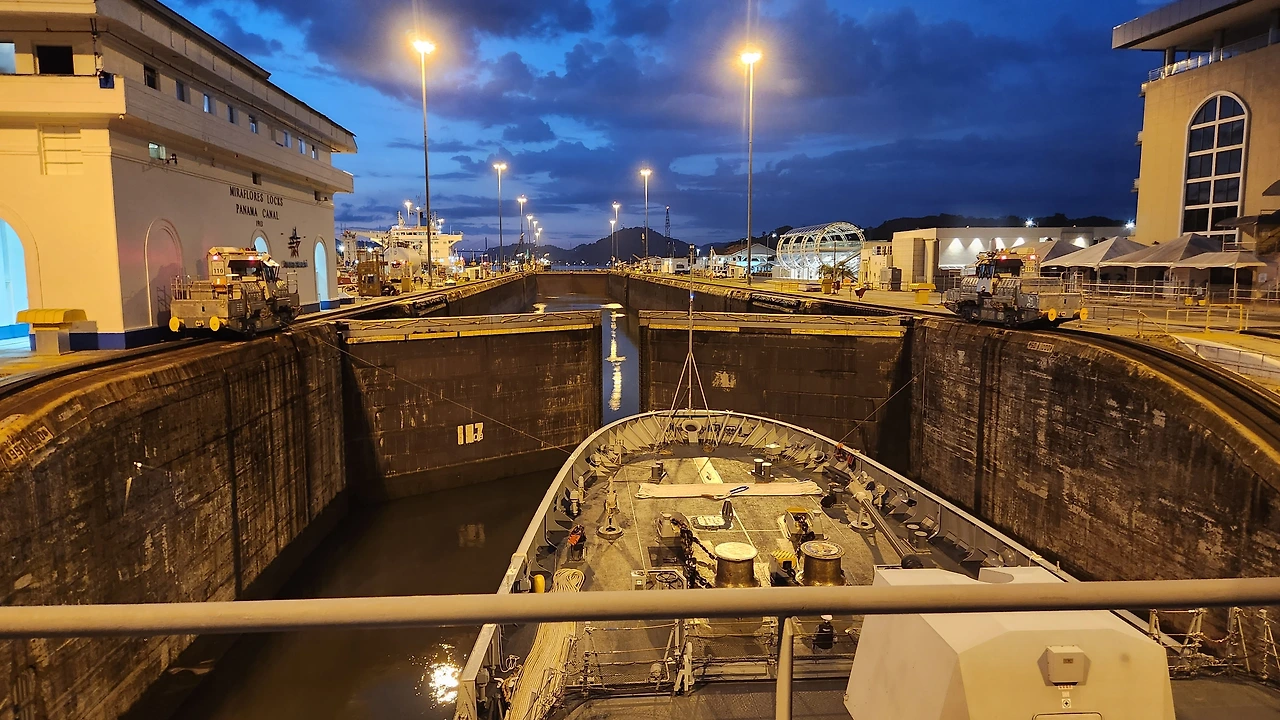 육천 톤에 육박하는 배가 계단을 오르리라고는 쉬이 상상할 수 없을 것이다. 여러 갑문을 통과하며 오른 운하 정상에는 고요한 강어귀가 보였다. 어두운 밤 중에 구불구불 이어진 파나마의 가툰호수와 강의 지류를 거슬러 올랐다.