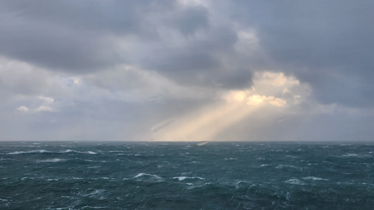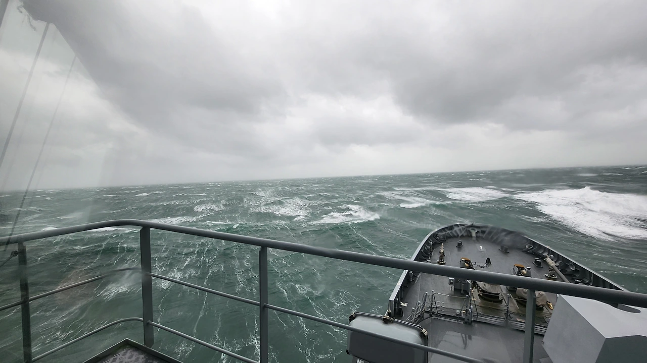 "제법 파고는 높을 것 같습니다만, 항해 일정을 늦출 정도는 아닐 것으로 보입니다."