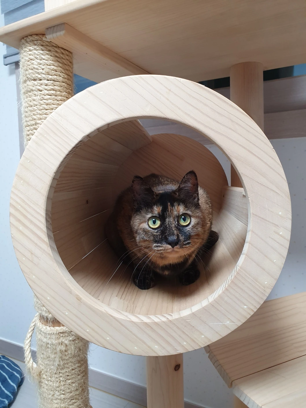 결혼을 했더니 고양이가 생겼다. 남편이 총각 시절부터 키웠던 떼껄룩 여자 고양이. 이름은 야옹이. 도둑고양이라서 정확한 나이는 알 수 없지만 대략 8살이라고 한다. 검은색, 갈색, 주황색이 뒤섞인 강아지급 덩치의 거묘지만 성격은 매우 소심했다. 신혼집 이사 첫날, 고양이 케이지에 한참을 숨어있더니 내가 잠시 화장실을 간 사이에 부리나케 작은방 캣타워로 도망쳐버렸다. 숨숨집에 웅크린 채 내가 살짝만 다가가도 하악거렸다. 33살 평생 고양이 키울 날만 기다리던 나는 마음 깊이 상처받았다.