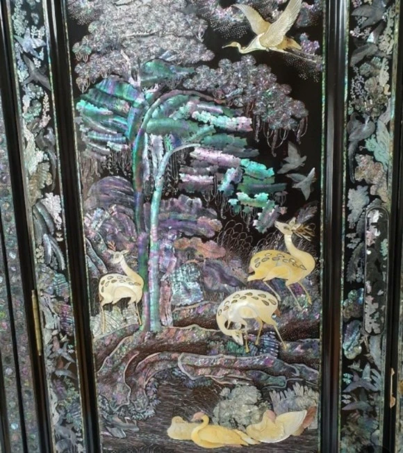 마당에서 마루 문을 열면 바로 오른편에 앞쪽으로 열어야 하는 안방 문이나온다. 햇살 가득 창호지 창이 우측에 줄 서있고, 창호지 창 아래에는 짙은 밤색의 커다란 전축이 공간을 차지하고 있었다. 정면 마주 보이는 건 빛나는 여러 빛깔의 자개농이 있고, 옆으로 작은 화장대가 있었다.