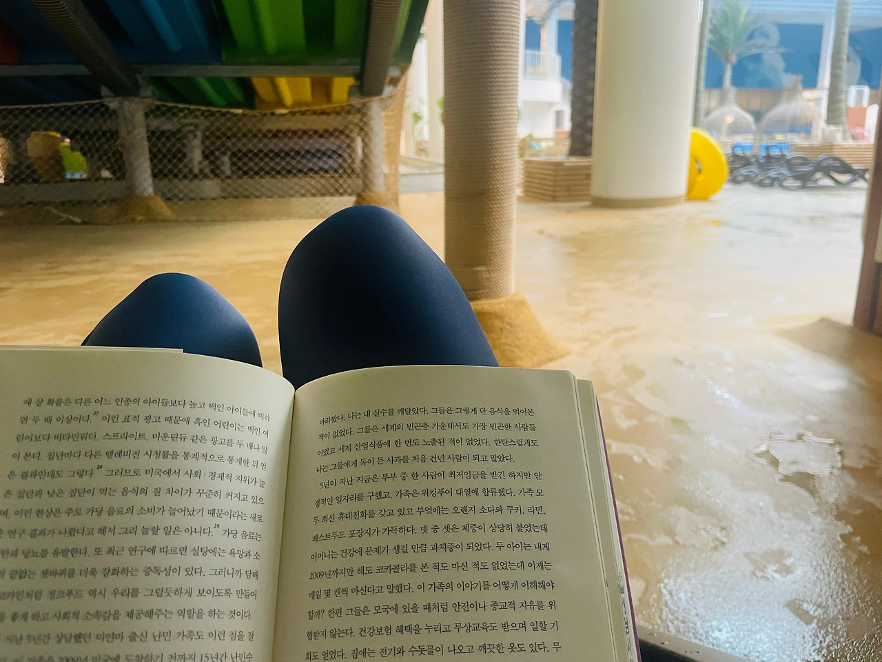 잠시 아이들 식사, 간식 챙겨주고 틈틈이 사진 찍어줄 때 말고는 주구장창 앉아있을 예정이라 썬베드를 대여했다. 여기 기대어 앉아, 집에서 싸 온 커피 마시며 독서하고 낮잠 자기로 힐링했다.