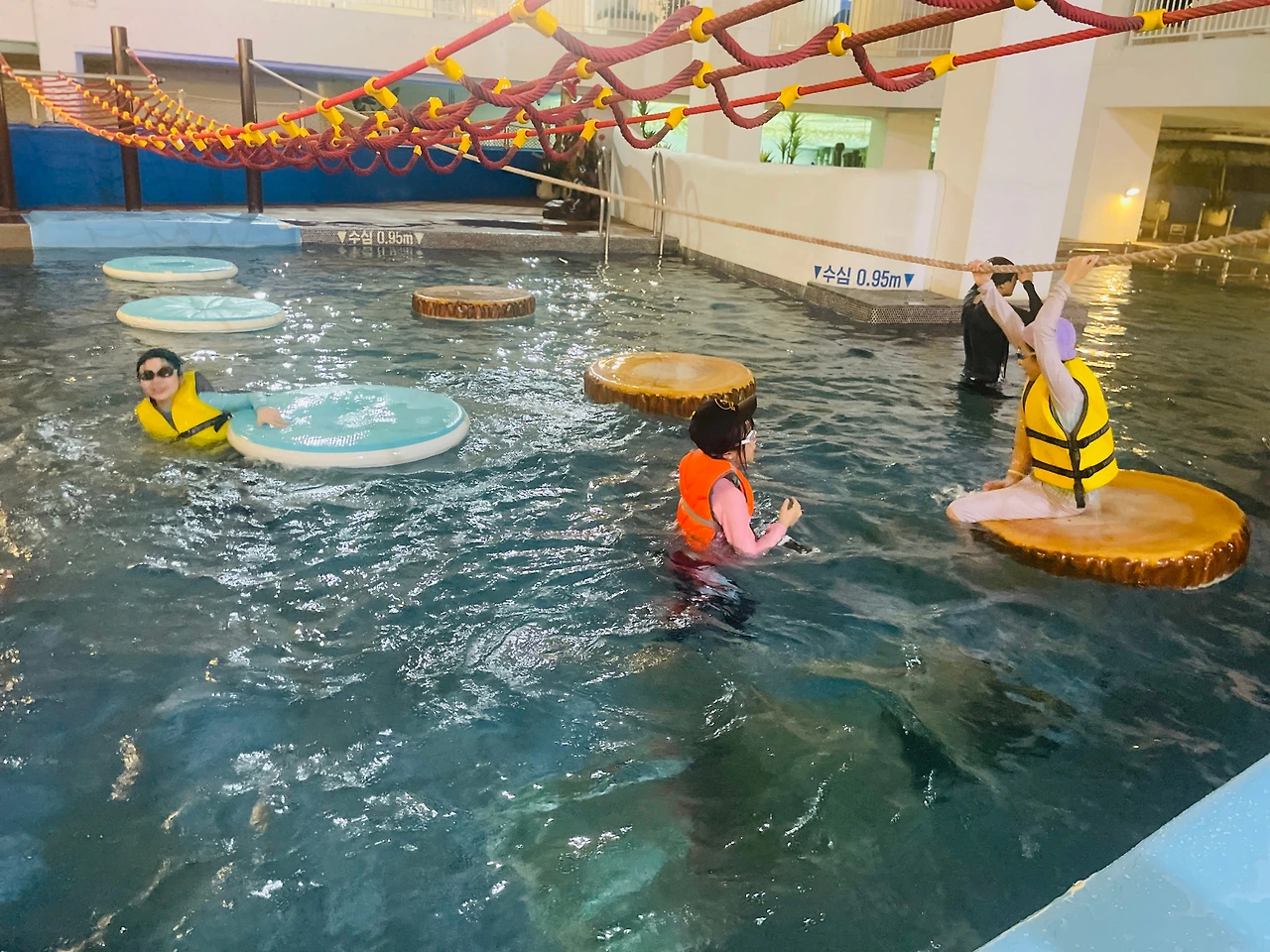 집에서 가깝고 실내라 추운 날씨에도 걱정 없는 워터파크로 두찌 친구들 데리고 놀러 왔다.
