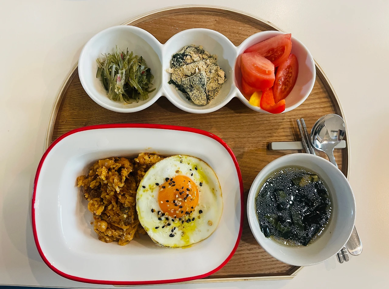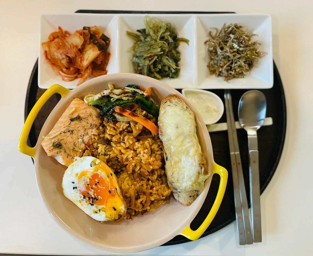 오늘도 역시, 코스트코에서 구입한 곡물빵과 수지스닭안심살로 샌드위치를 만들었고, 냉장고에 비상용으로 넣어 둔 김치볶음밥을 꺼내 식탁에 예쁘게 차려두었다.