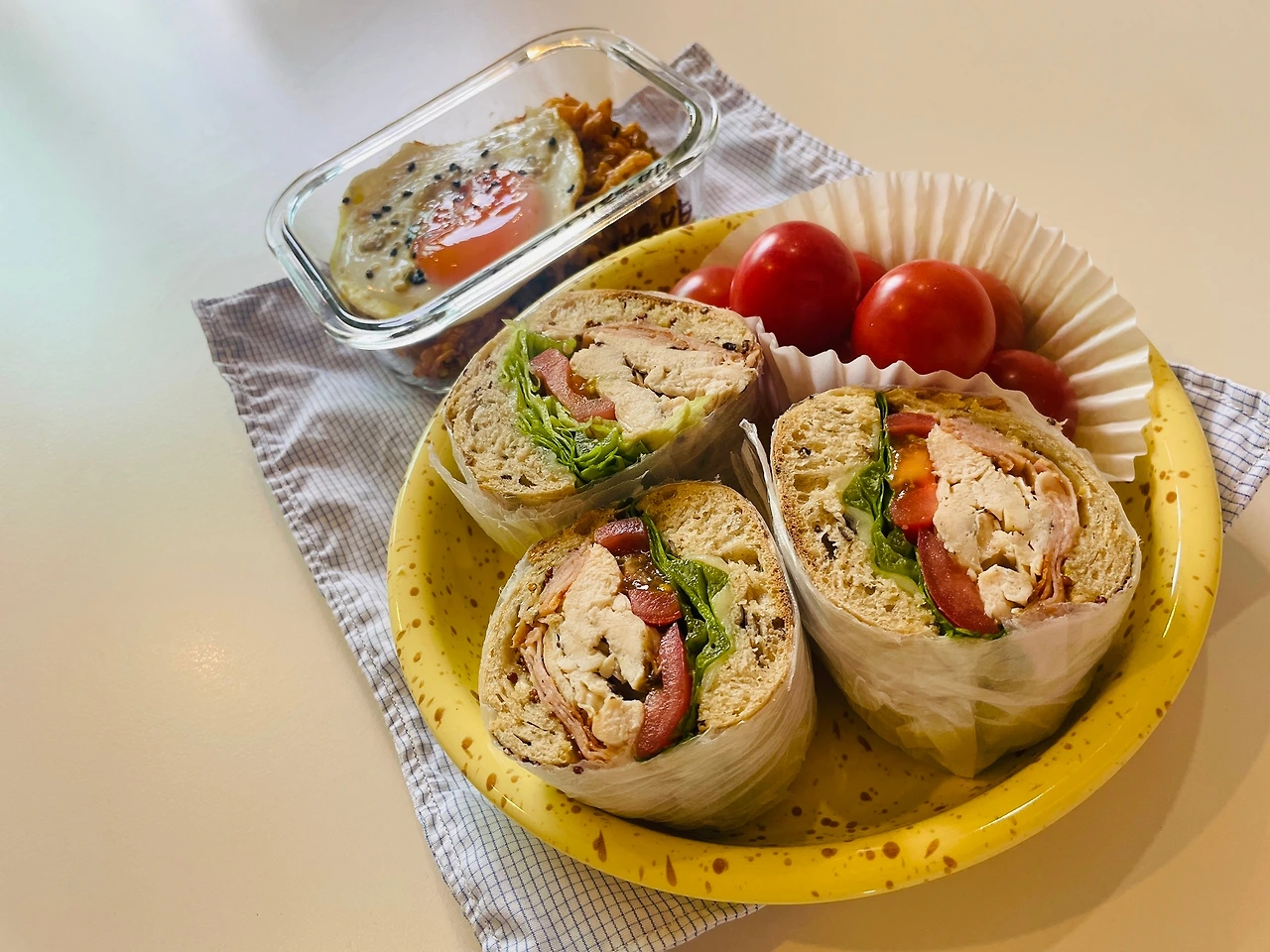 두찌의 샌드위치를 절반 잘라 내 커피간식으로 따로 담아두어서 함께 먹어봤다.