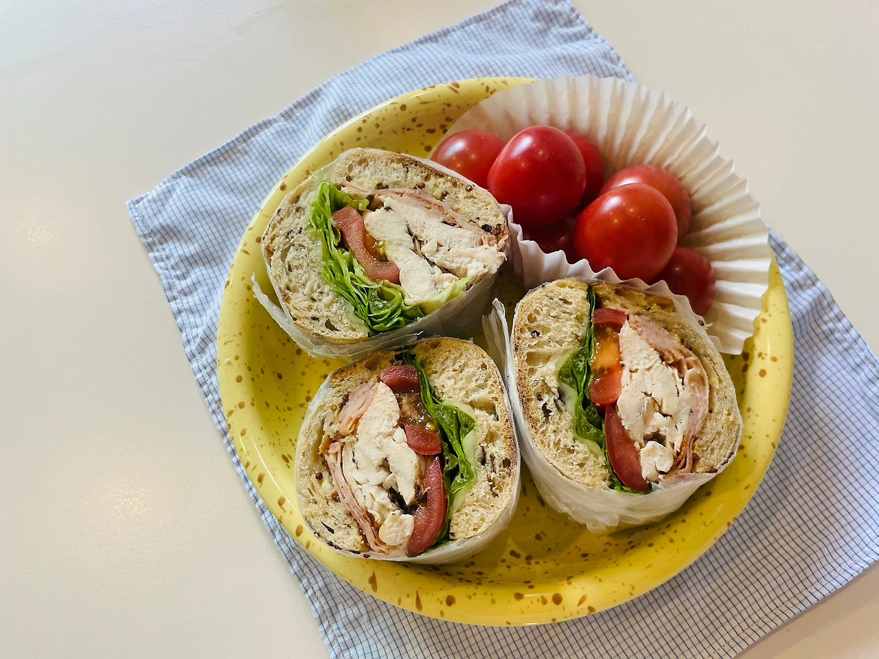 지난주엔 코스트코에서 구입한 크로와상 2개의 가운데를 주머니처럼 갈라내고 하나엔 새우와 슬라이스햄, 남은 하나엔 떡갈비를 넣고 공통재료로 하바티치즈, 상추, 허니머스터드소스를 채우니 풍성하고 예쁜 샌드위치 완성!